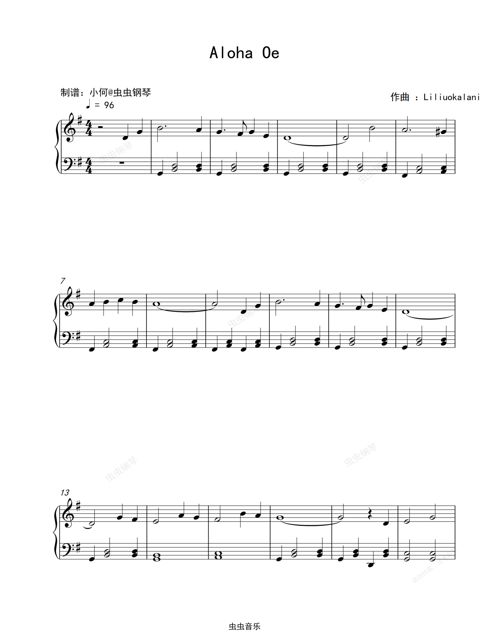 钢琴谱:Aloha Oe-夏威夷歌曲-Liliuokalani