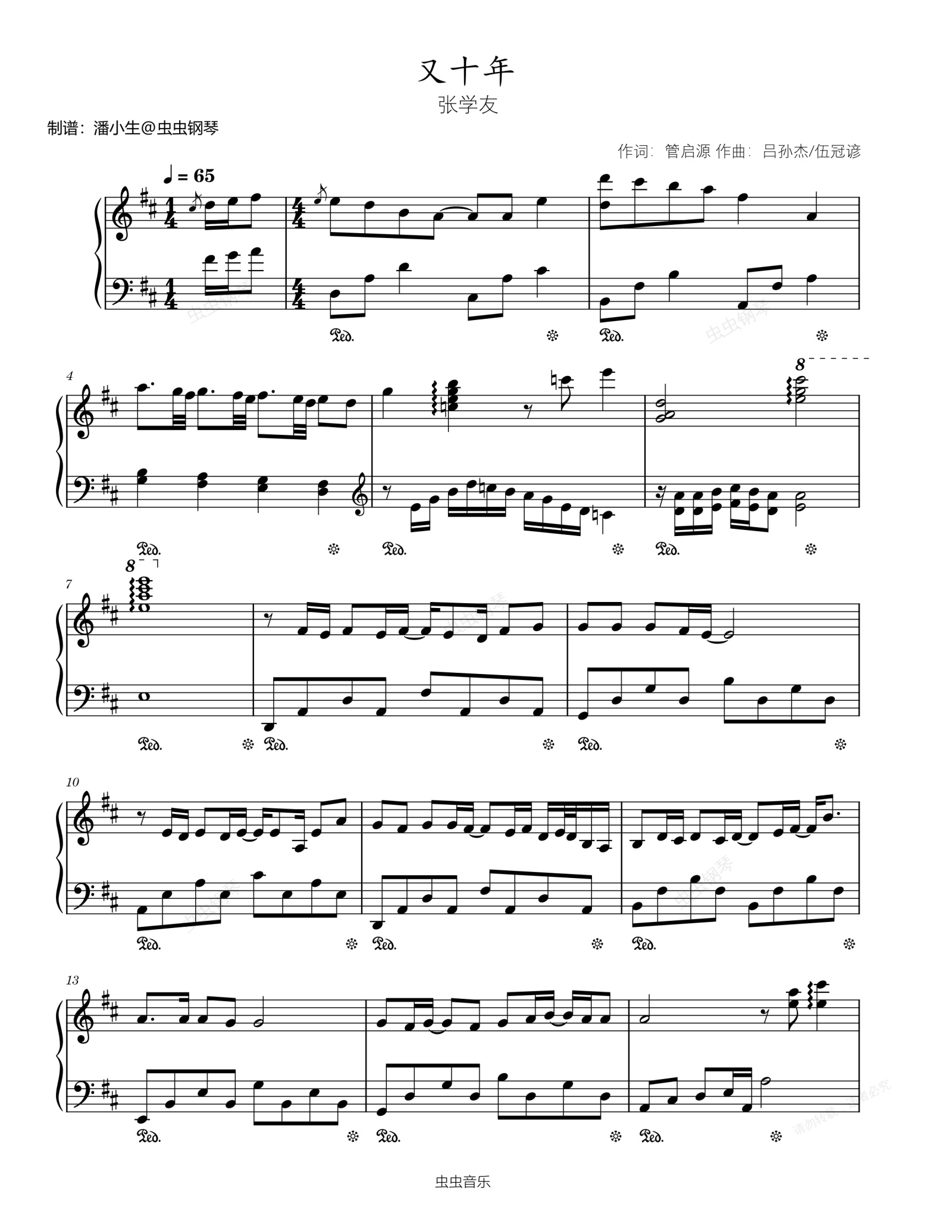 钢琴谱:《又十年》张学友 2023年新歌-独奏谱