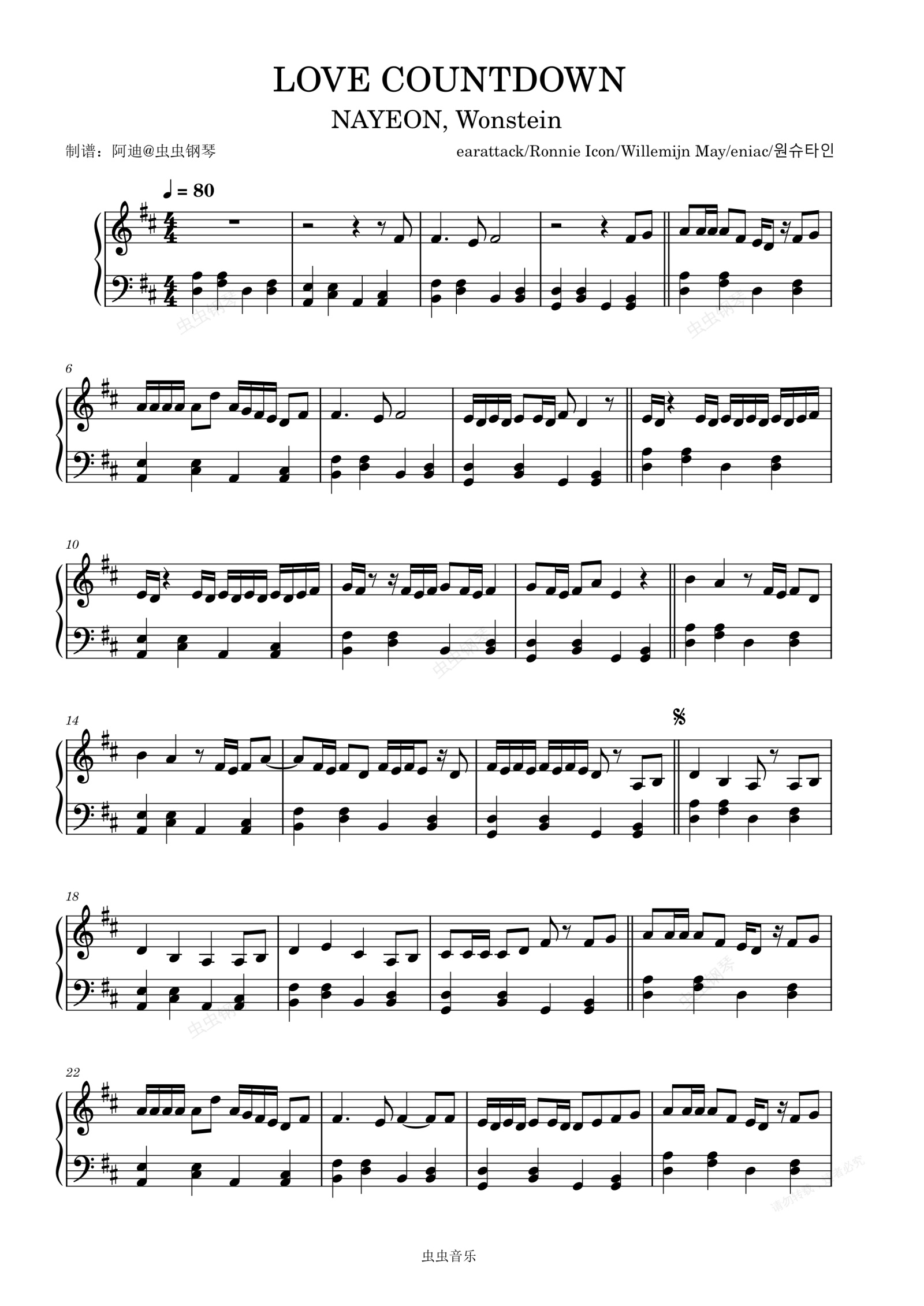 钢琴谱:LOVE COUNTDOWN (Feat. Wonstein) - 林娜琏 (나연)/Wonstein (원슈타인)