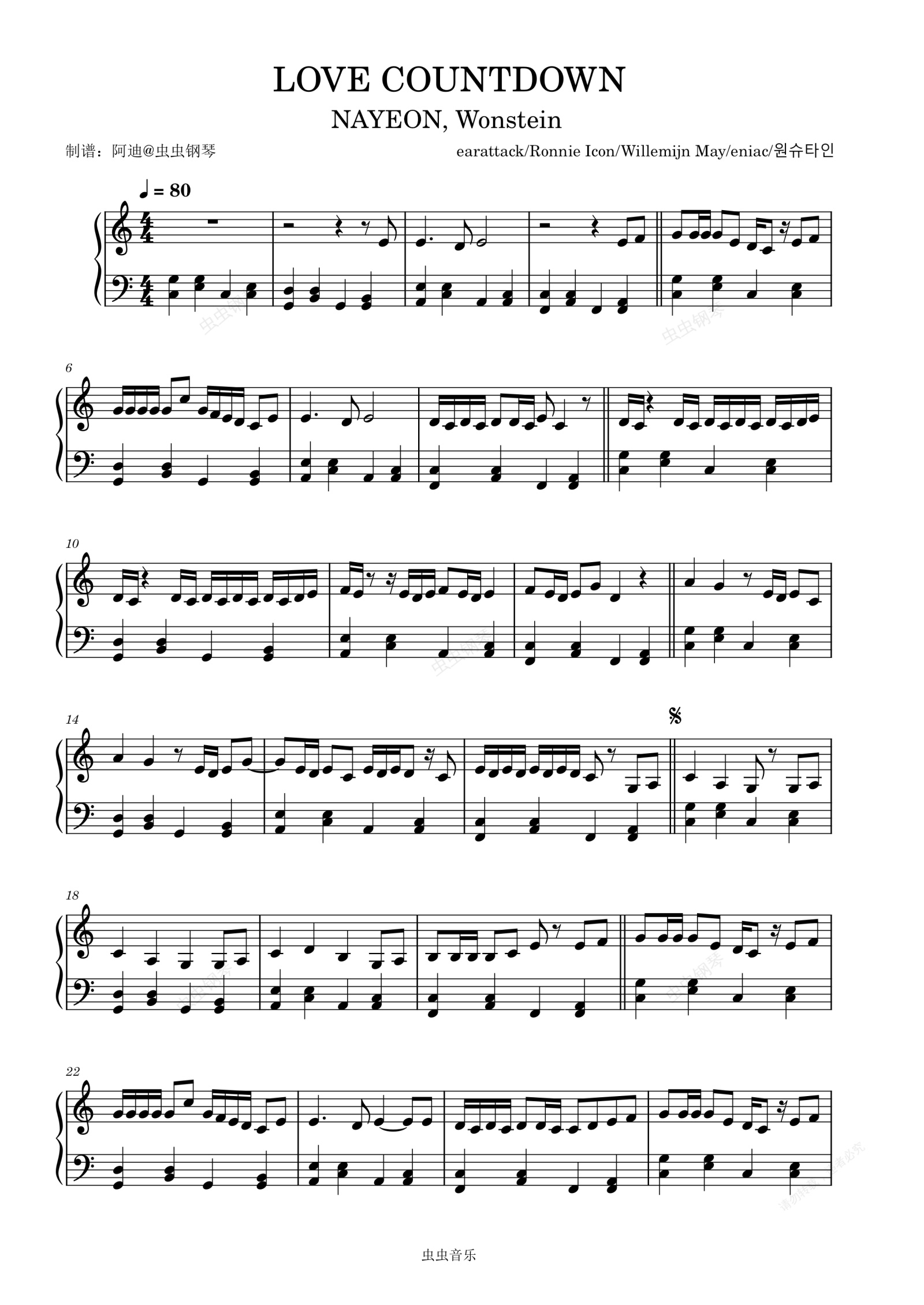 钢琴谱:LOVE COUNTDOWN (Feat. Wonstein) - 林娜琏 (나연)/Wonstein (원슈타인)