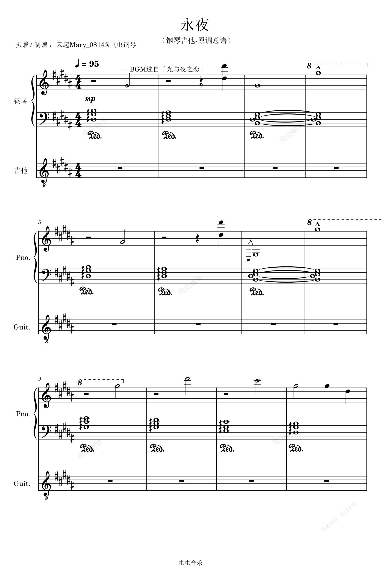 钢琴谱:【光与夜之恋】《永夜》原调-钢琴吉他谱