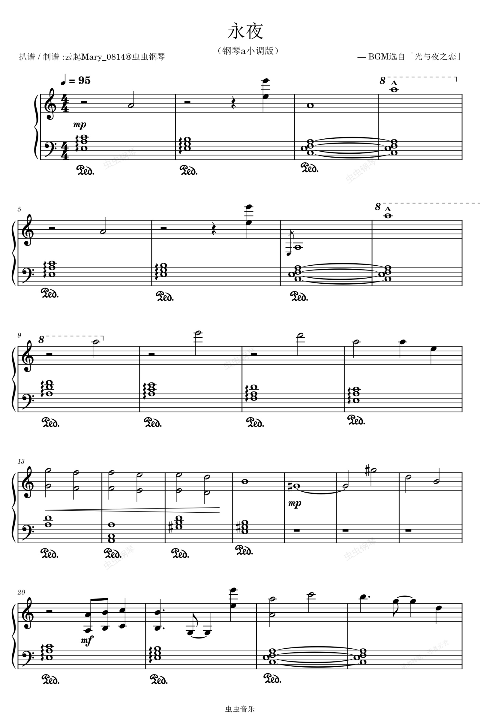 钢琴谱:【光与夜之恋】《永夜》a小调纯钢琴谱