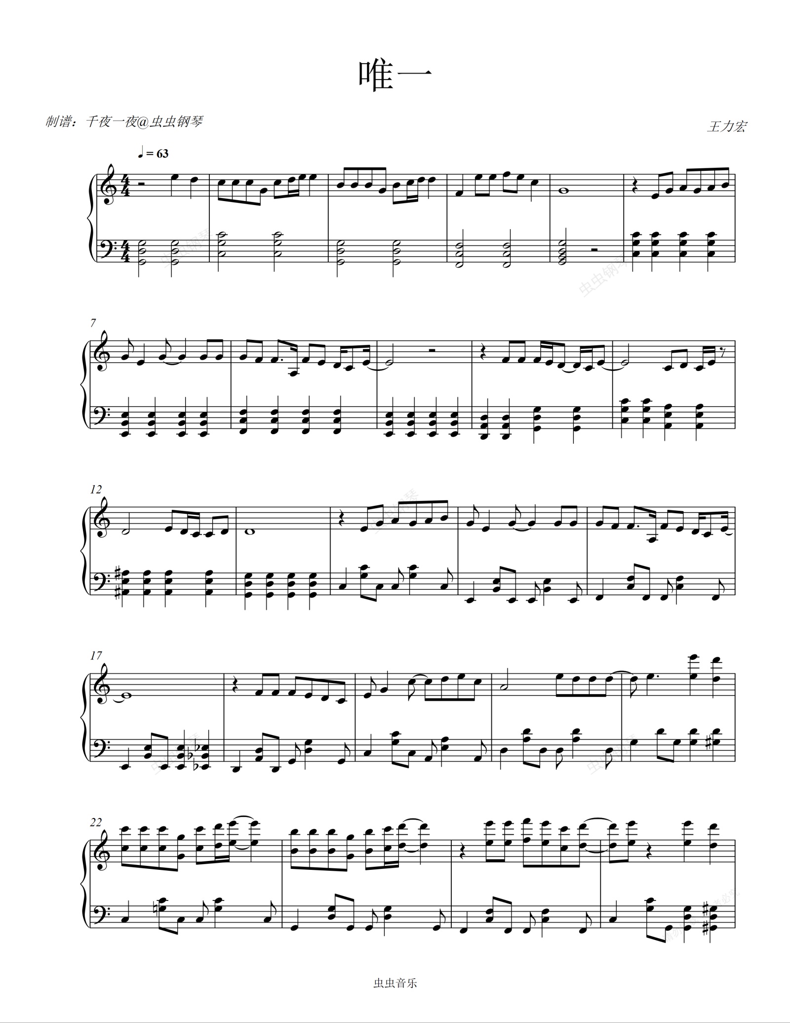 钢琴谱:已经20年了!谁还记得这首歌?王力宏《唯一》经典