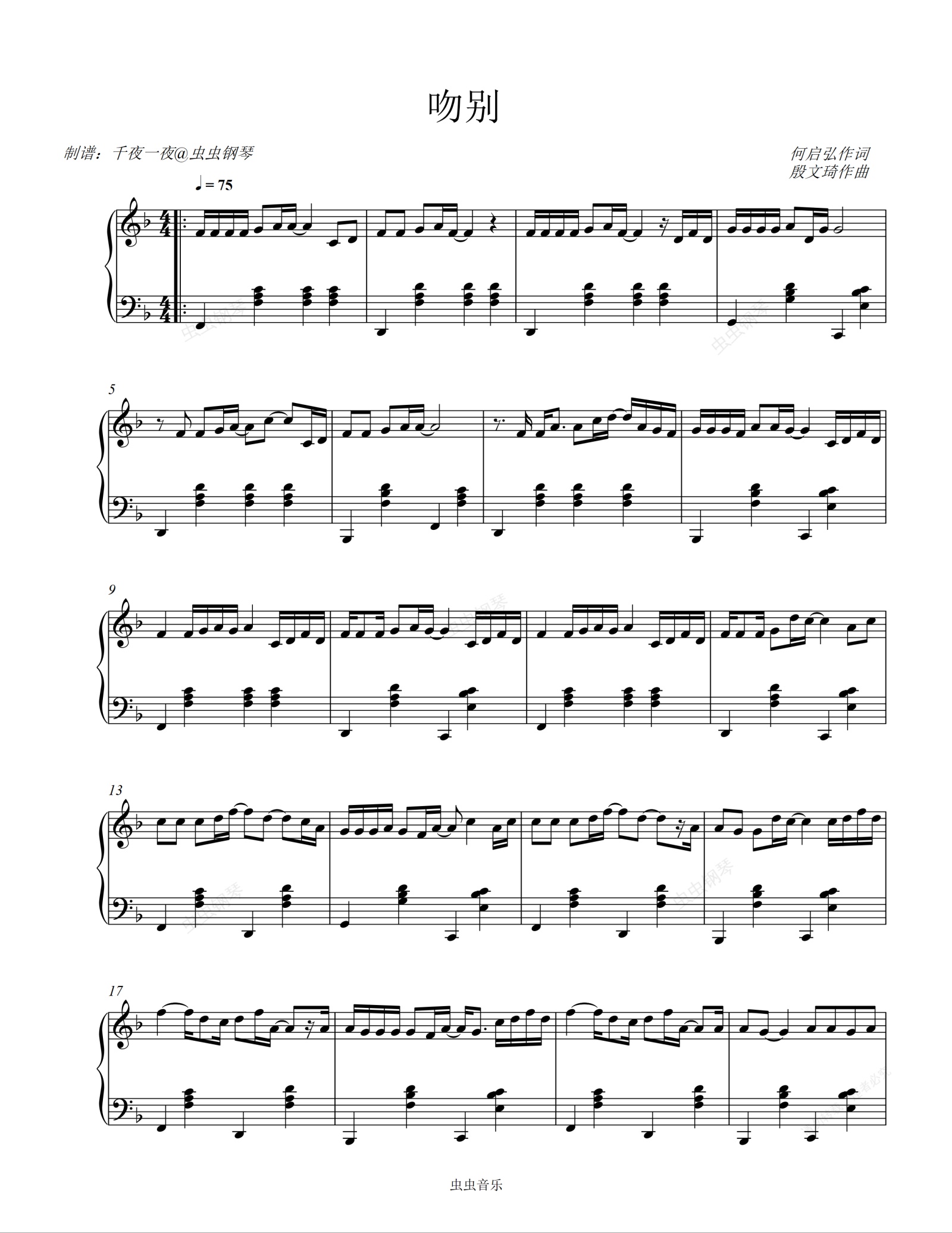 钢琴谱:张学友《吻别》现象级歌曲!我的世界开始下雪