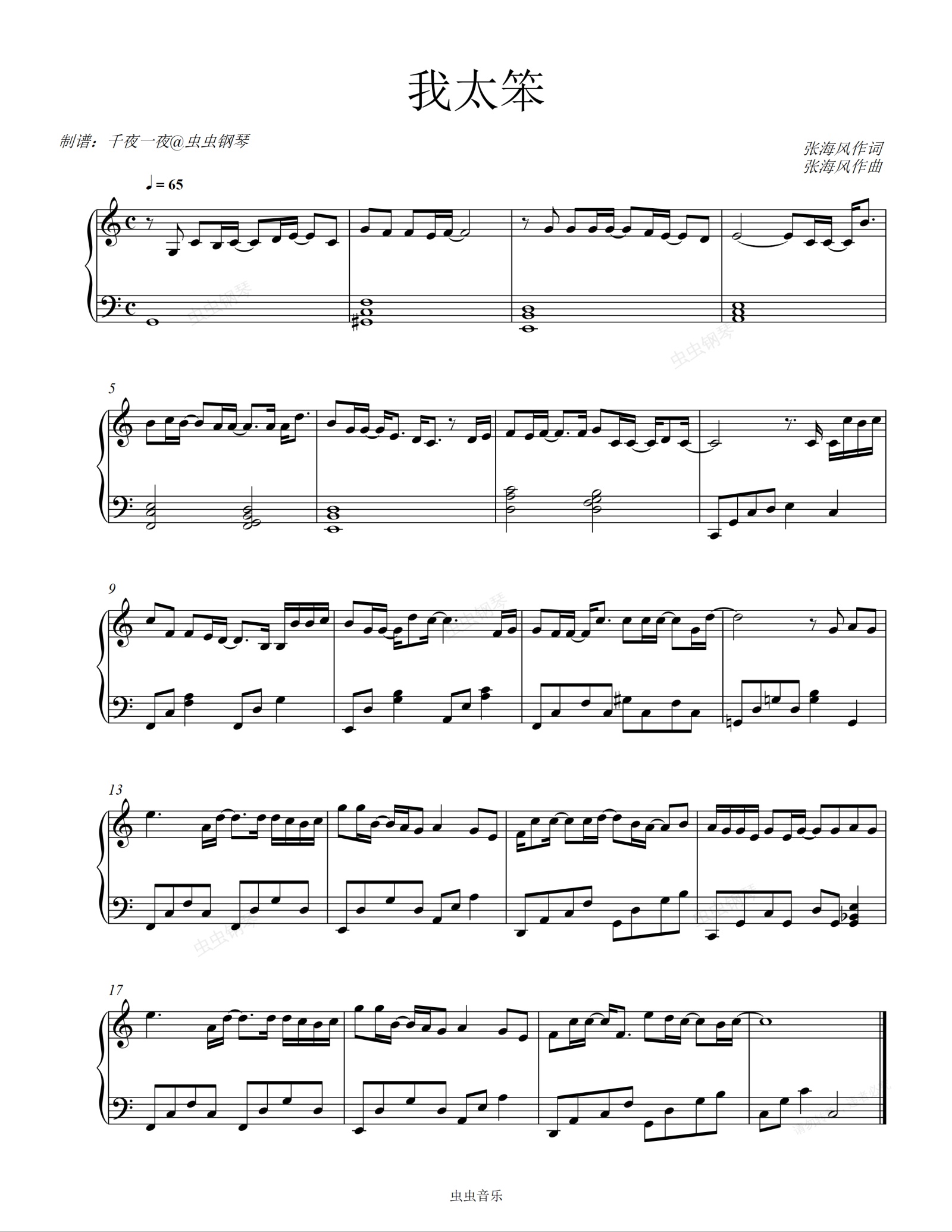钢琴谱:是不是《我太笨》,给不了你渴望的安稳!