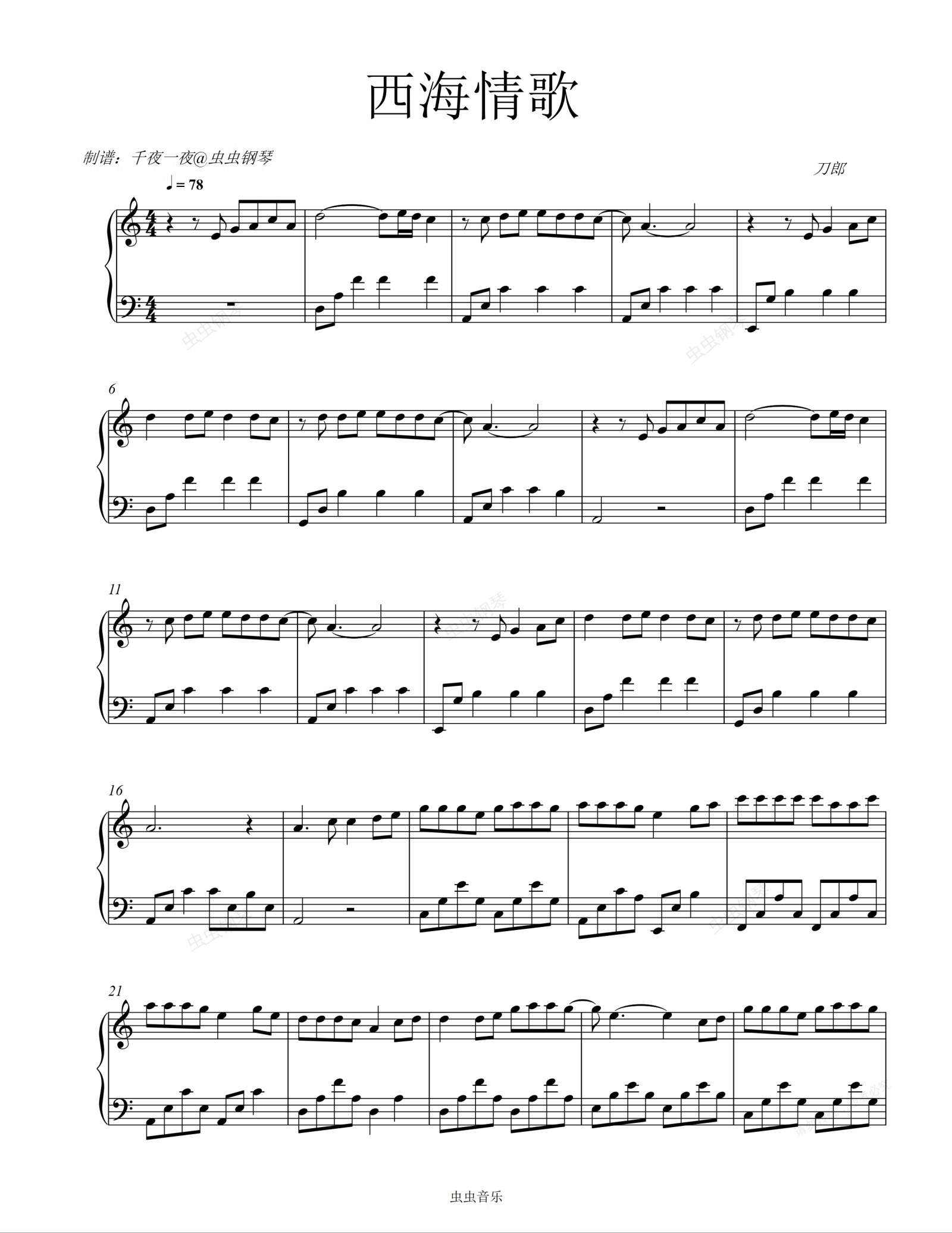 钢琴谱:刀郎《西海情歌》独特嗓音,唱出了人间沧桑,每次都深深感动!
