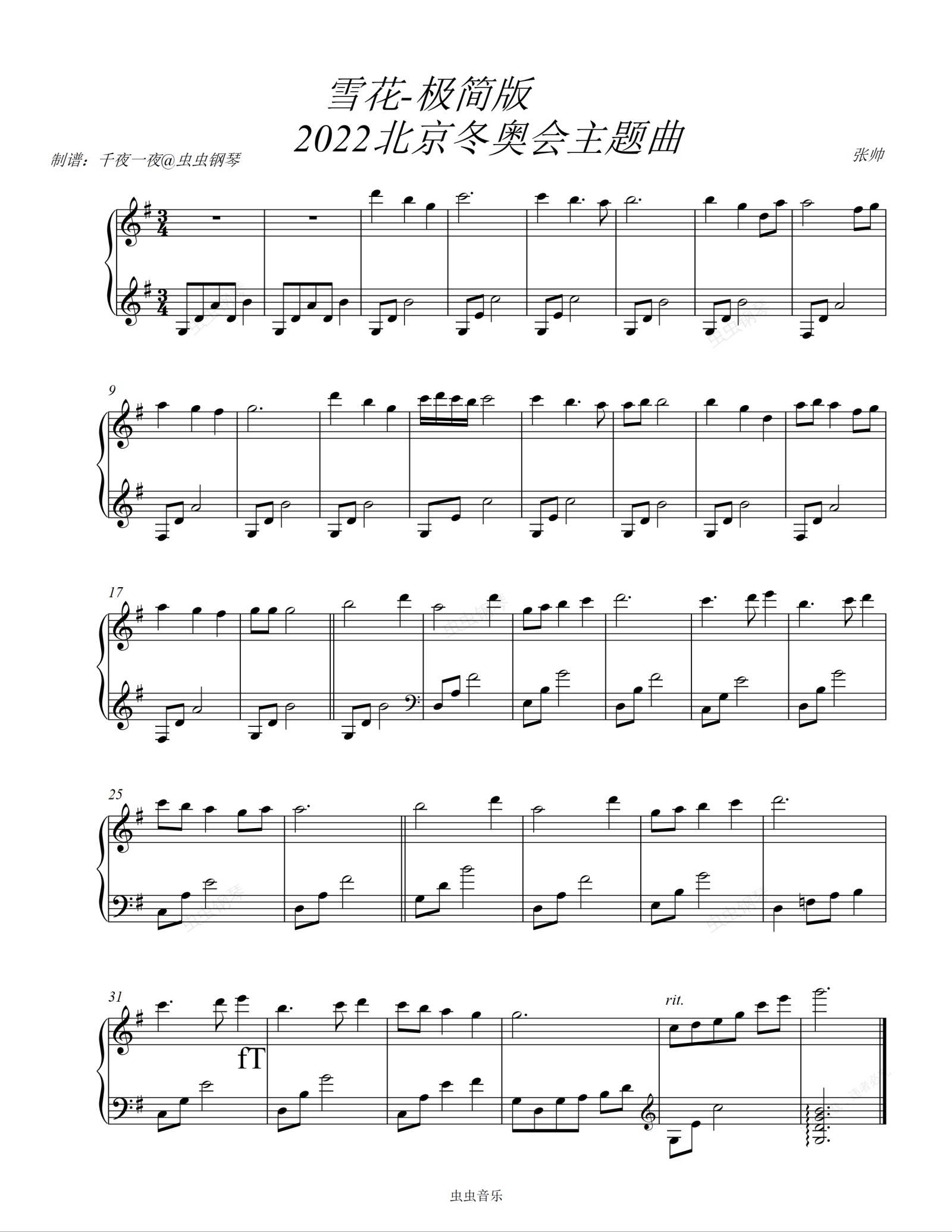 钢琴谱:雪花-极简版-2022北京冬奥会主题曲