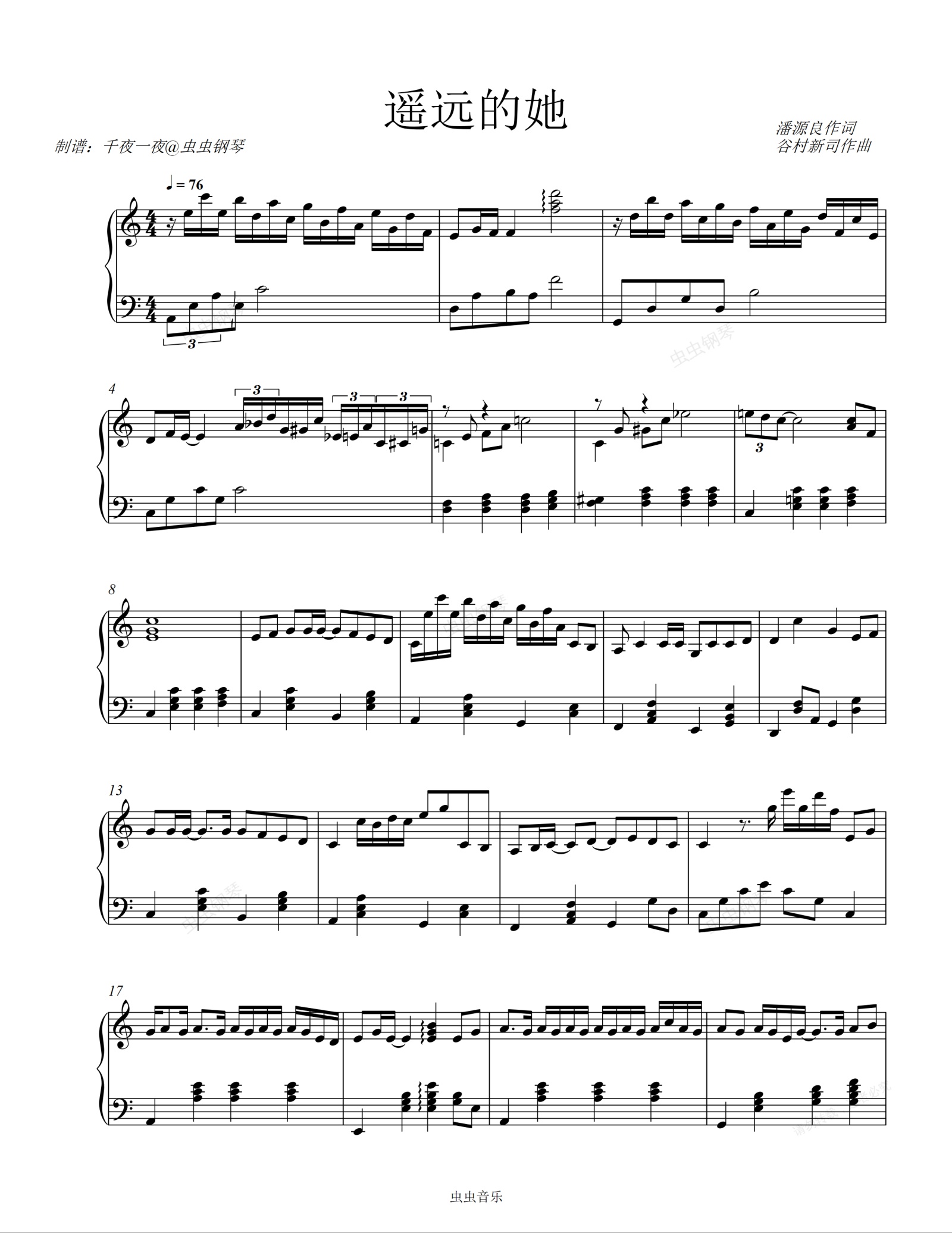 钢琴谱:让晚风轻轻吹送了落霞。《遥远的她》cover.张学友