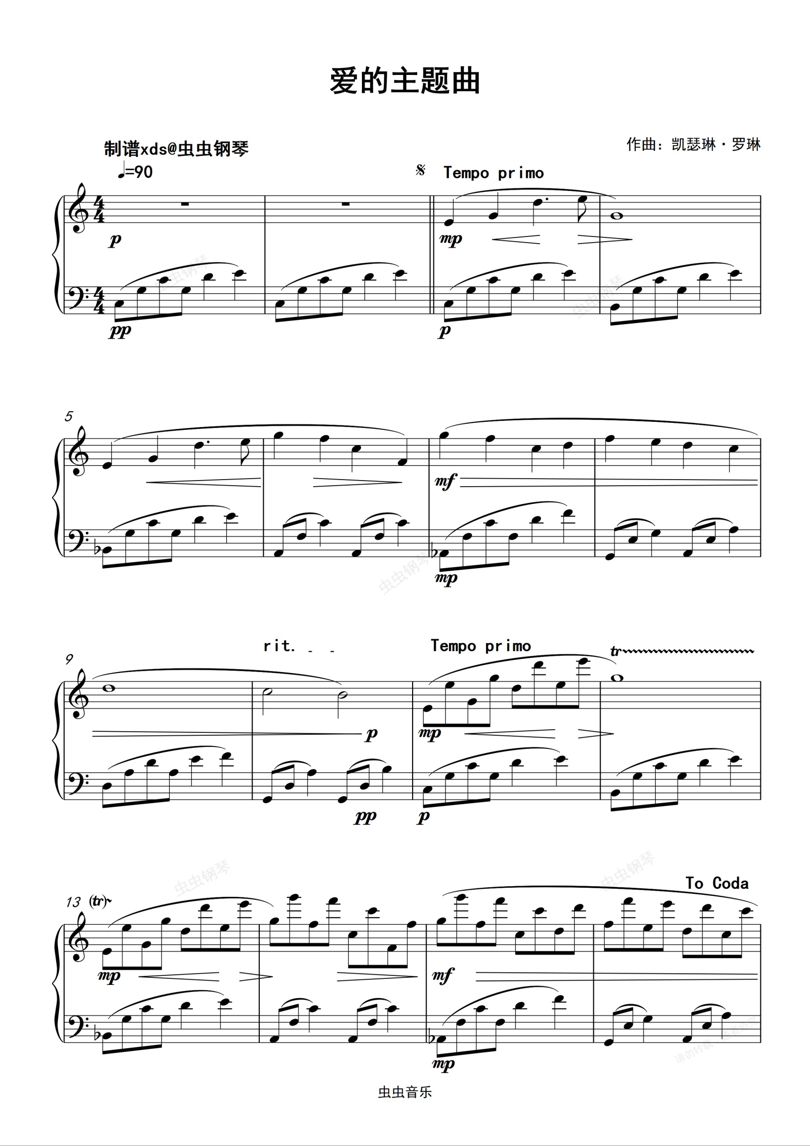 钢琴谱:爱的主题曲