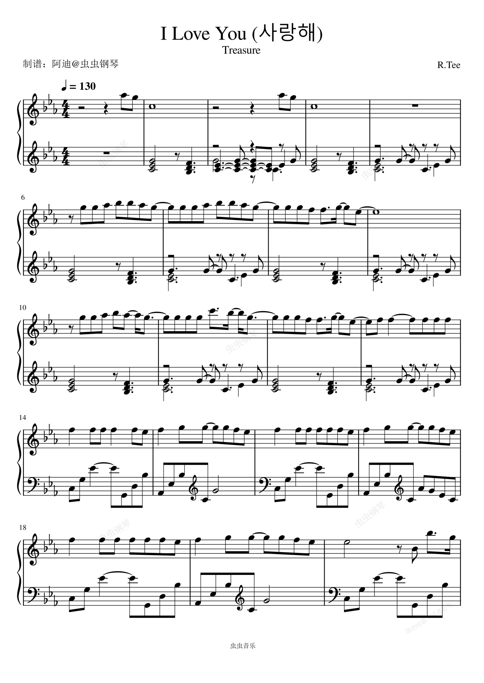 钢琴谱:I LOVE YOU - TREASURE (트레저)