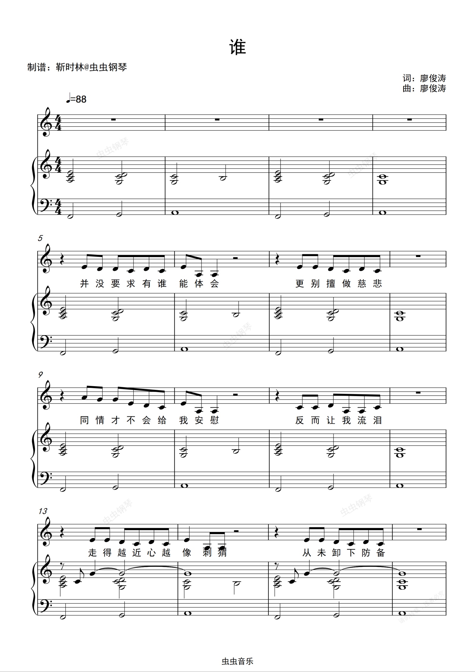 钢琴谱:《谁》C调高还原弹唱 带歌词