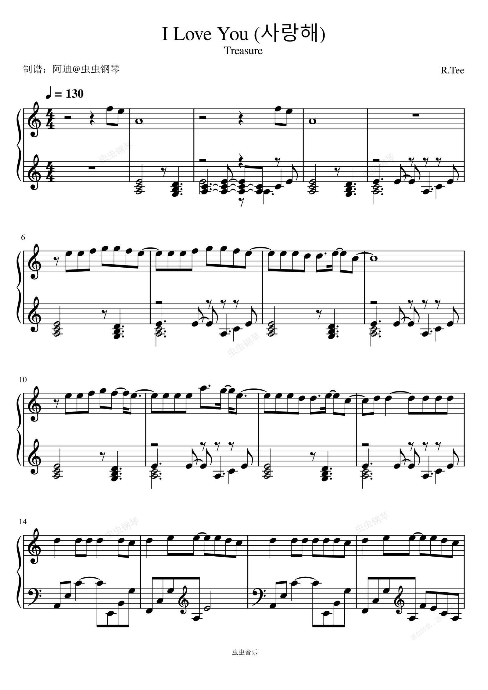 钢琴谱:I LOVE YOU - TREASURE (트레저)