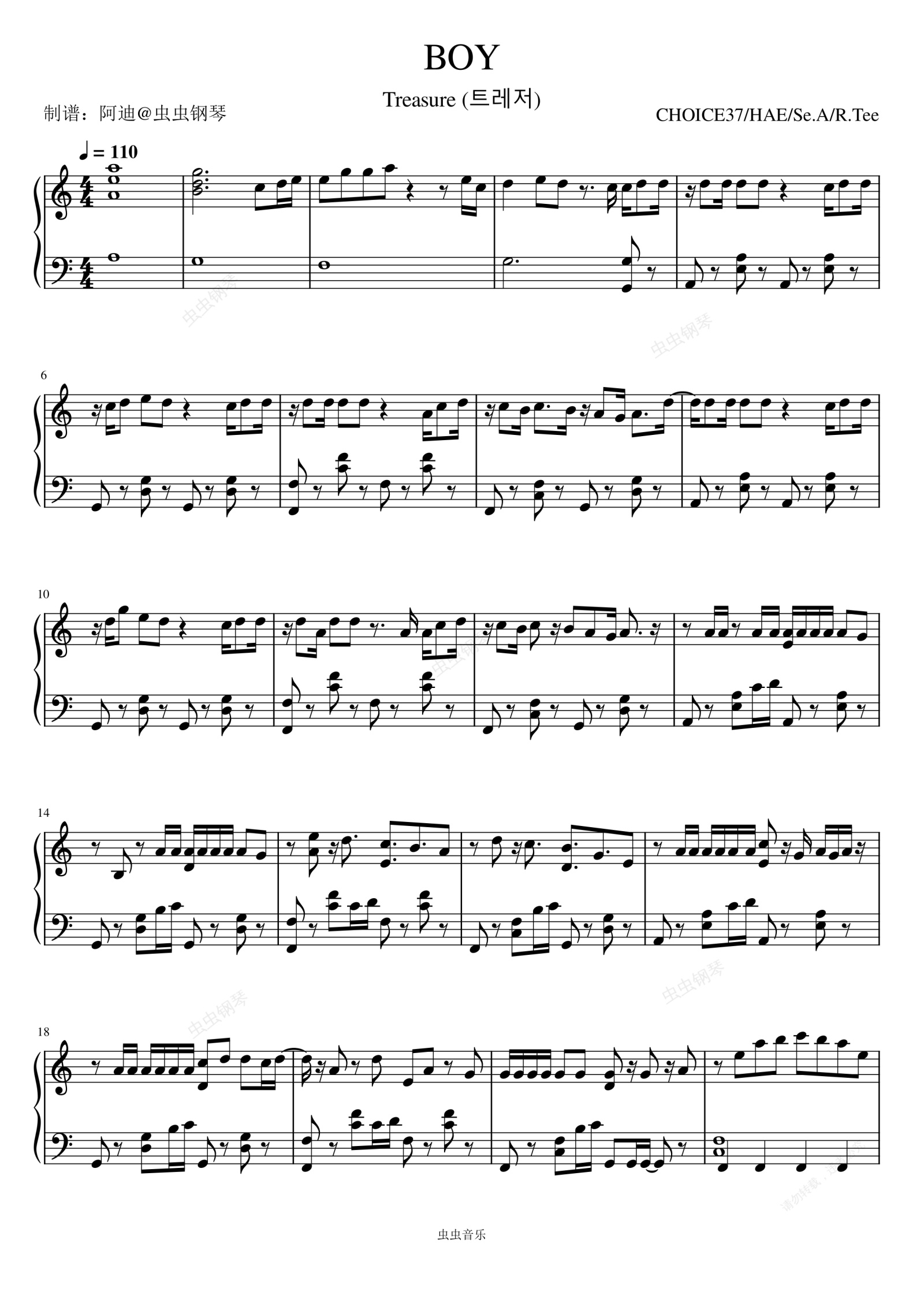 钢琴谱:BOY - TREASURE (트레저)