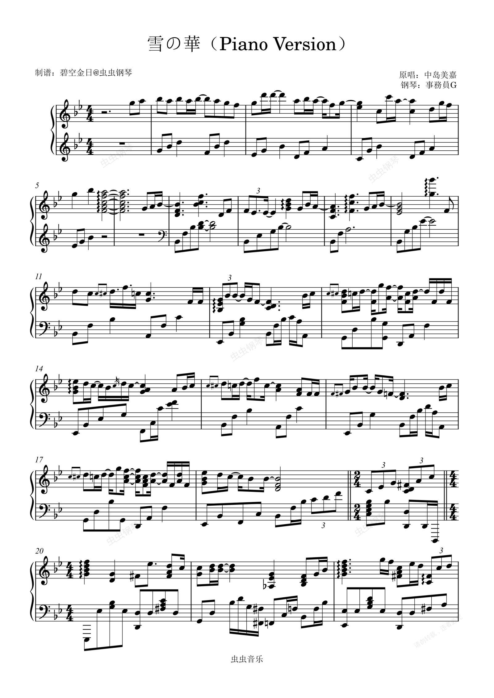 钢琴谱:雪の華(Piano Version) - 事務員G