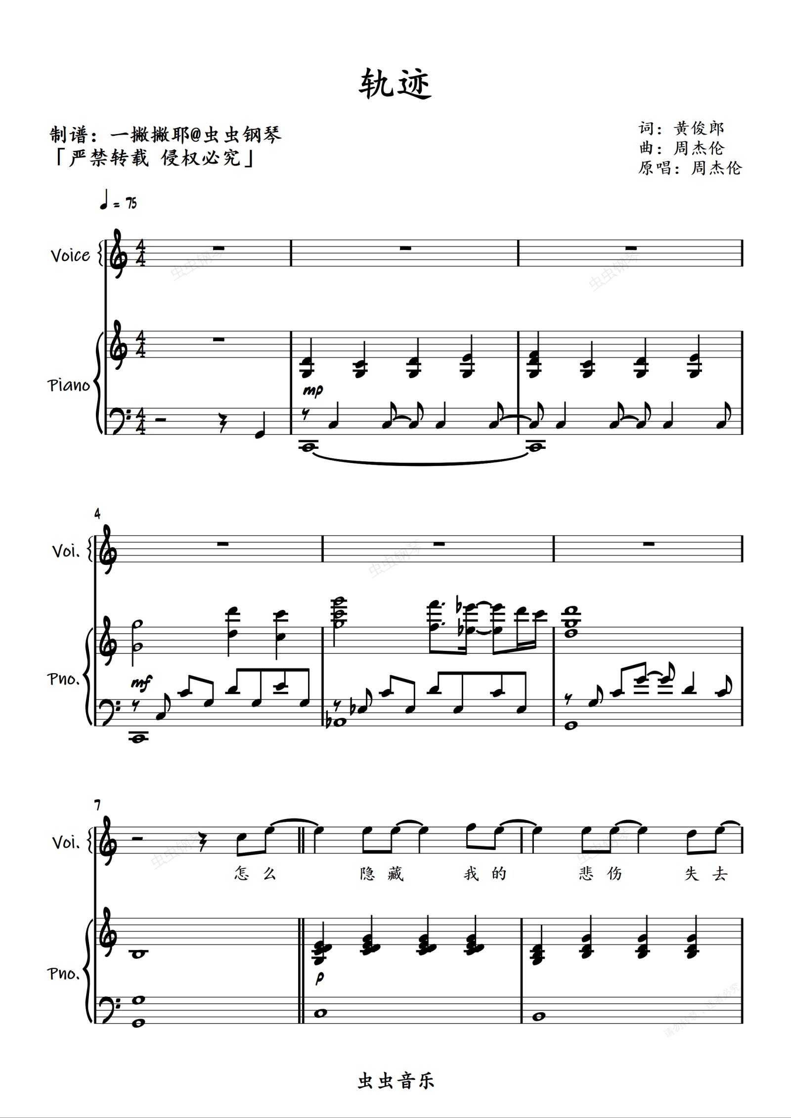 钢琴谱:C调女版弹唱《轨迹》周杰伦「一撇撇耶」