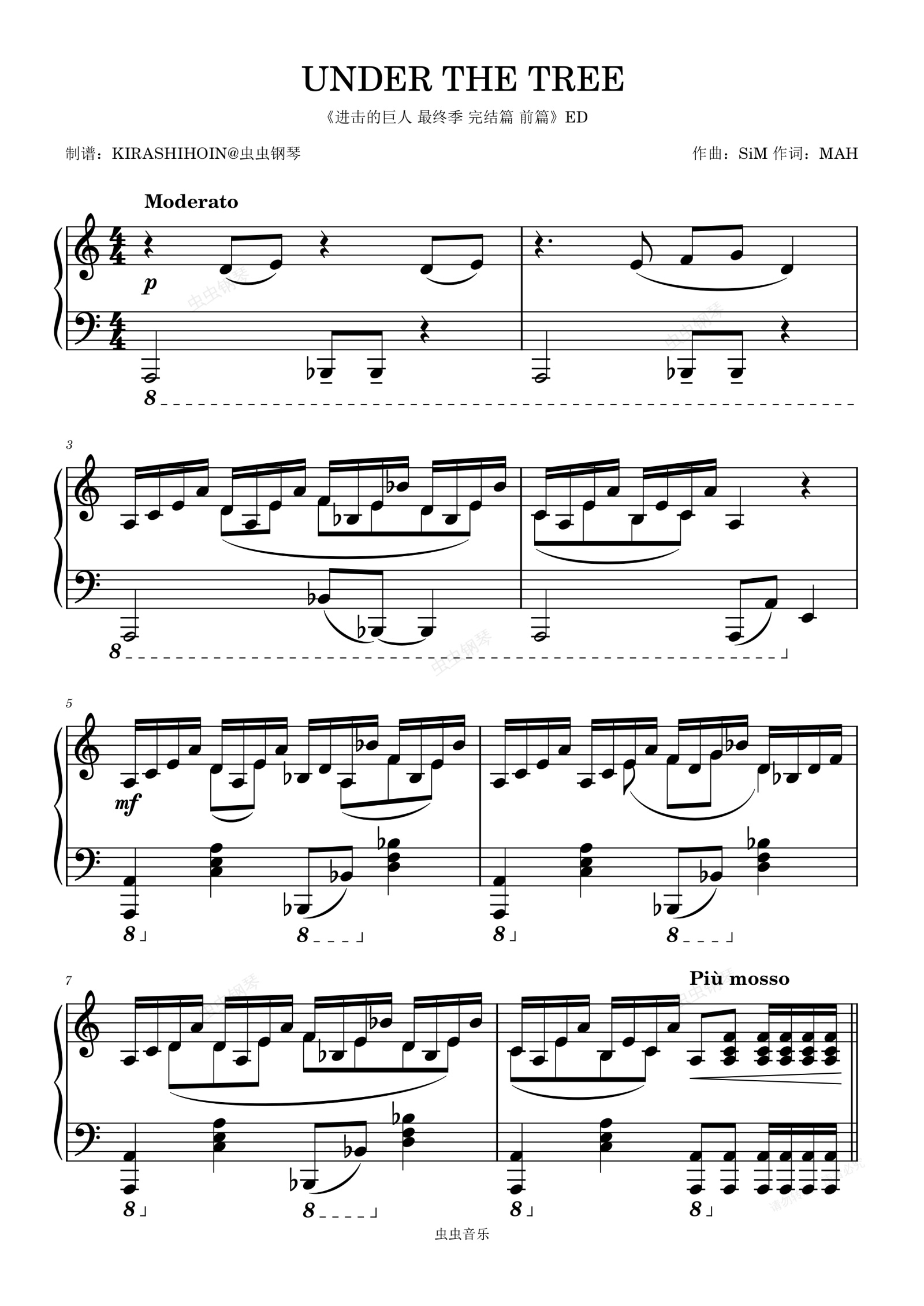 钢琴谱:UNDER THE TREE(《进击的巨人 最终季 完结篇 前篇》ED/片尾曲)- SiM