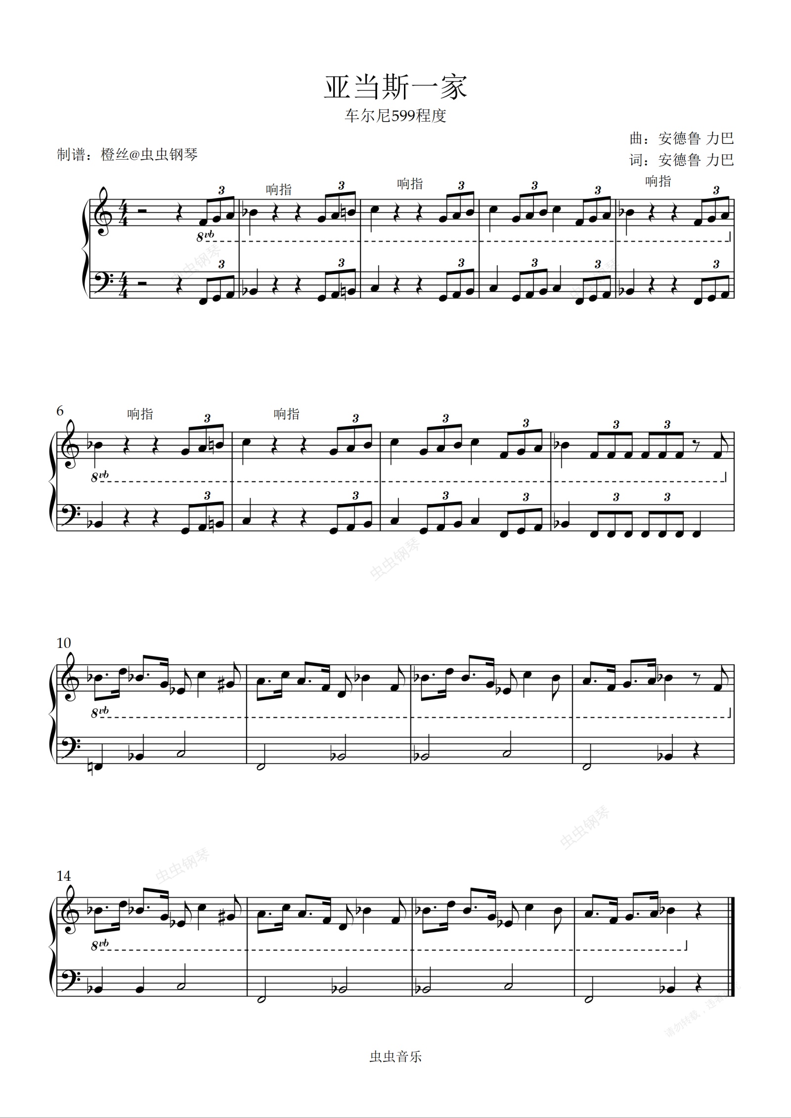 钢琴谱:亚当斯一家(车尔尼599程度)