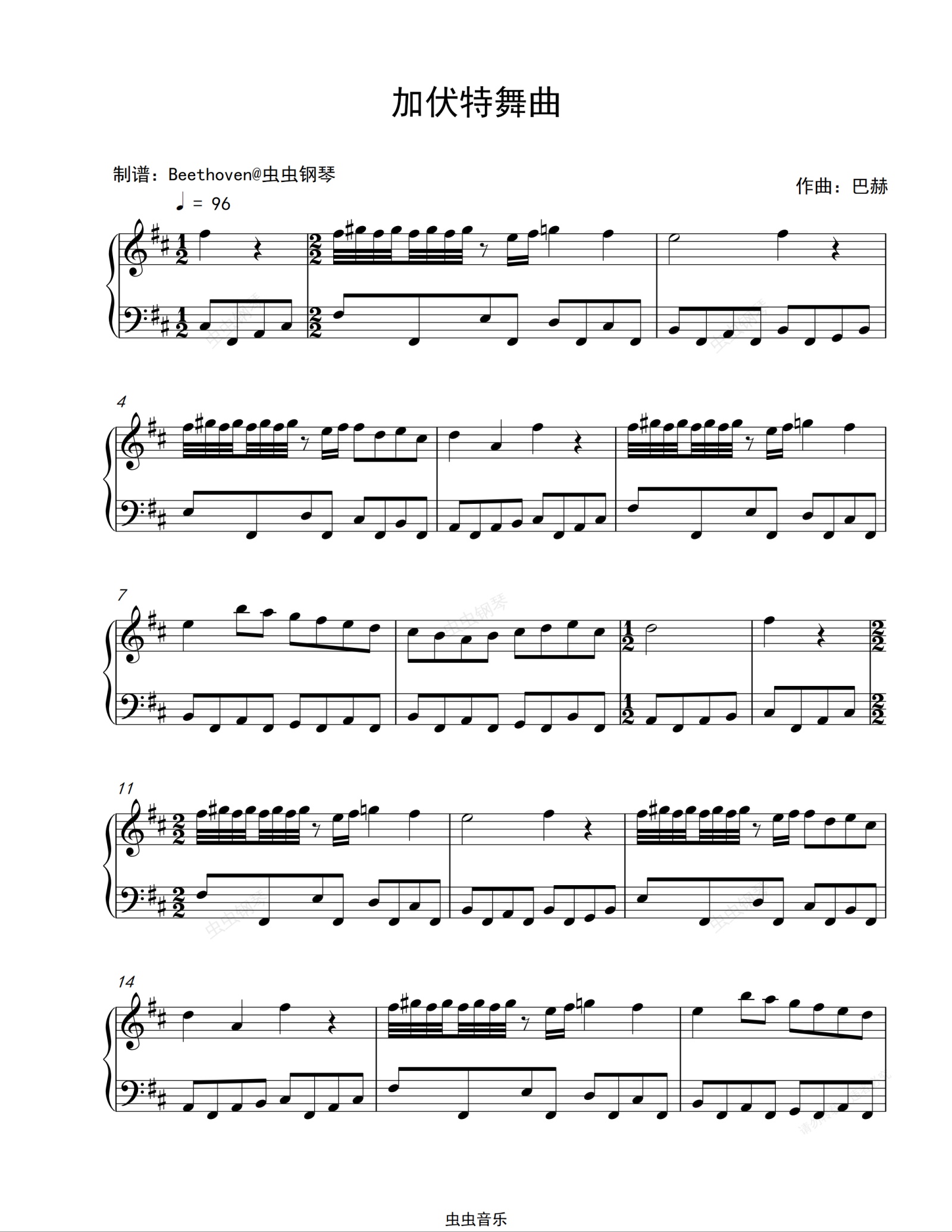 钢琴谱:加伏特舞曲 18-巴赫初级钢琴曲集-巴赫