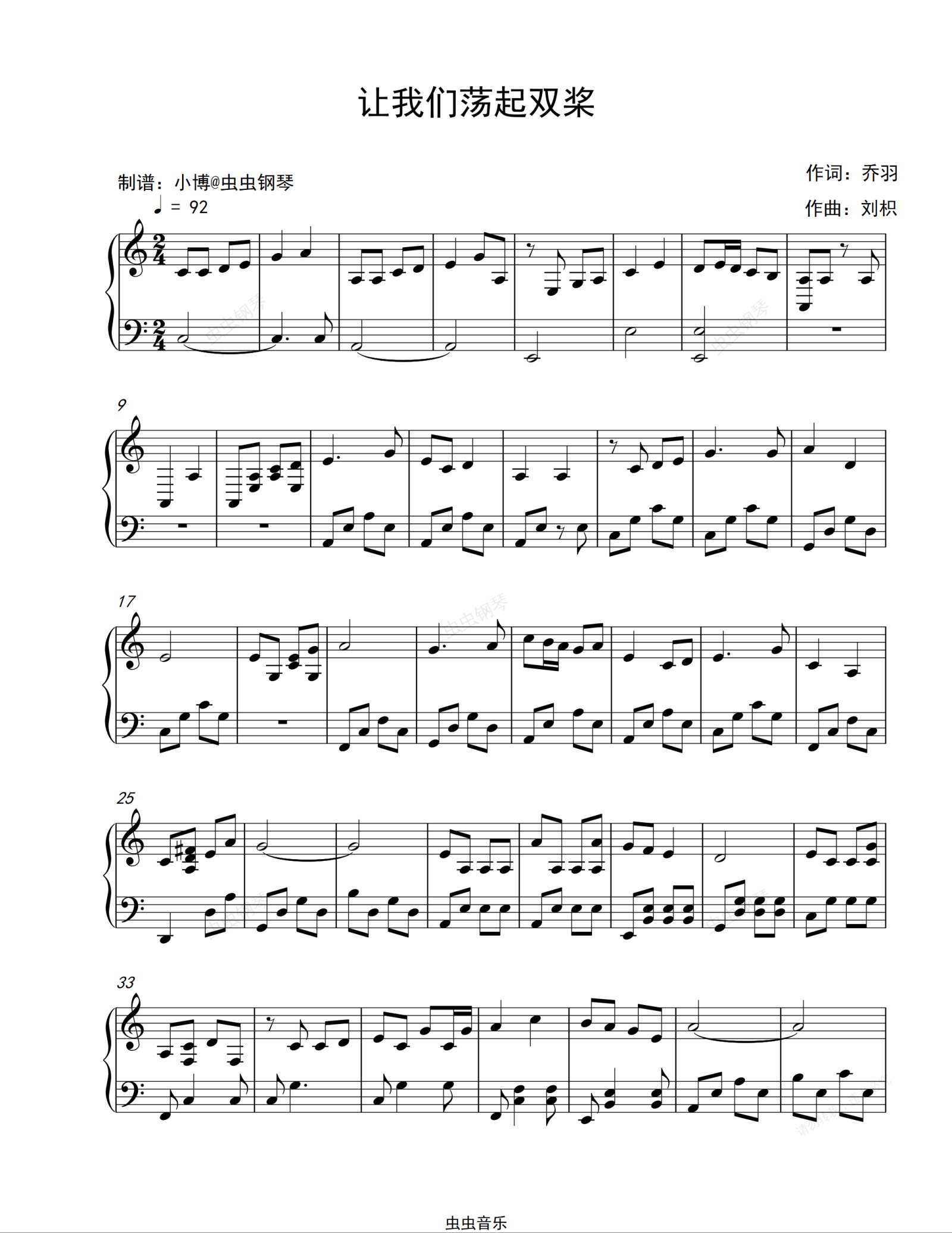 钢琴谱:让我们荡起双桨-简单版-刘枳