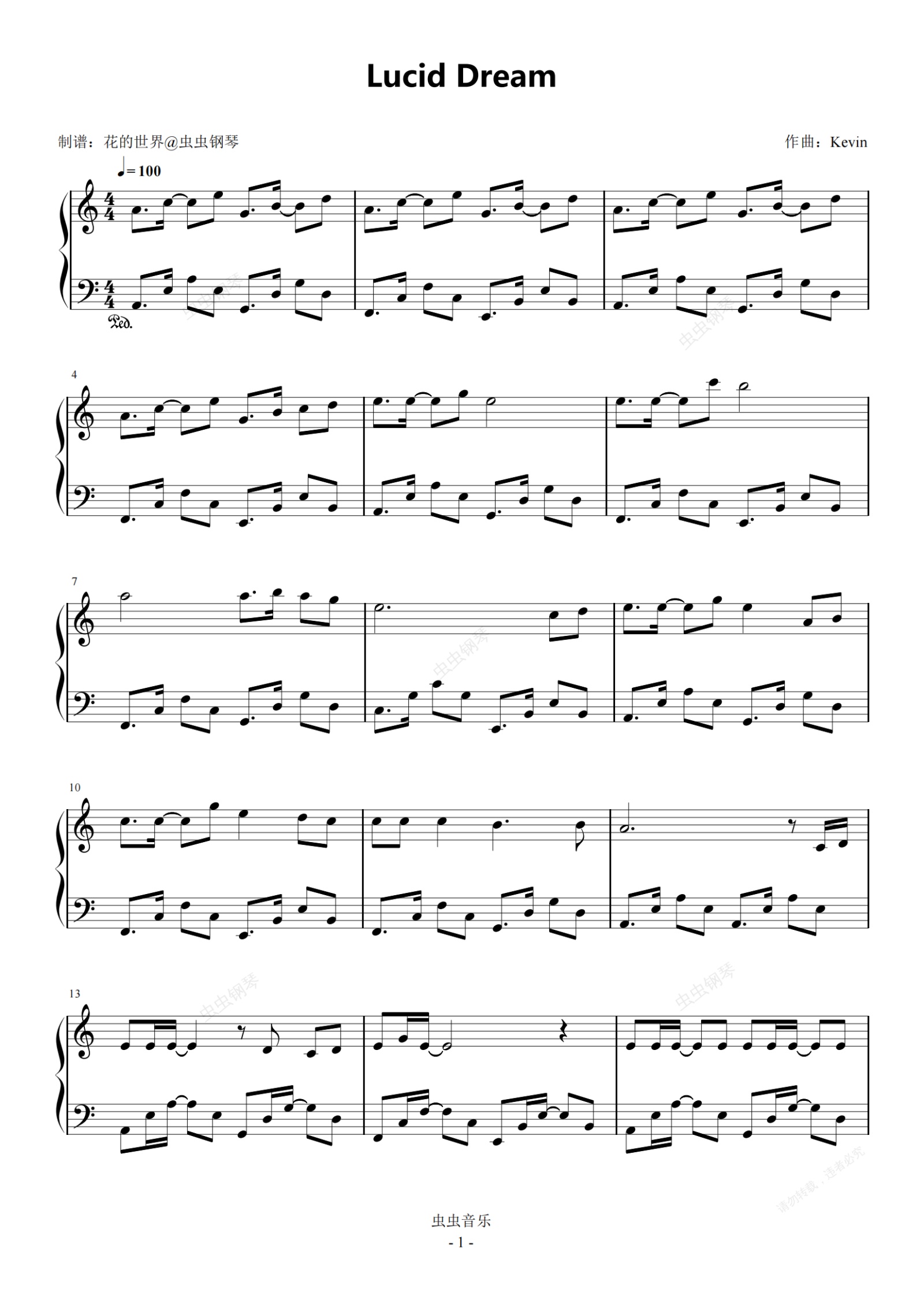 钢琴谱:Lucid Dream C调简易版