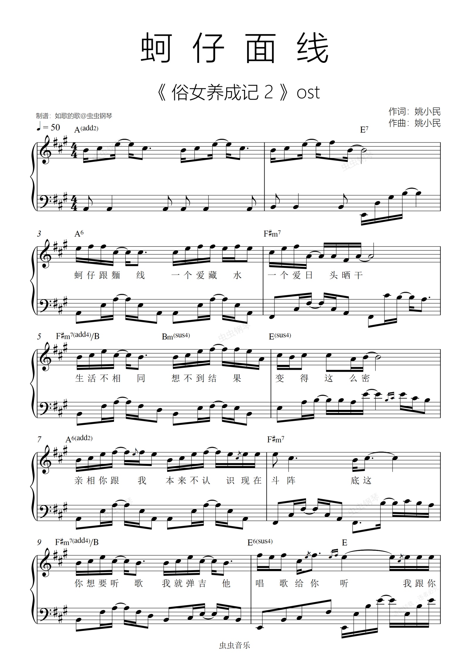 钢琴谱:蚵仔面线-闽南语民谣-俗女养成记2ost