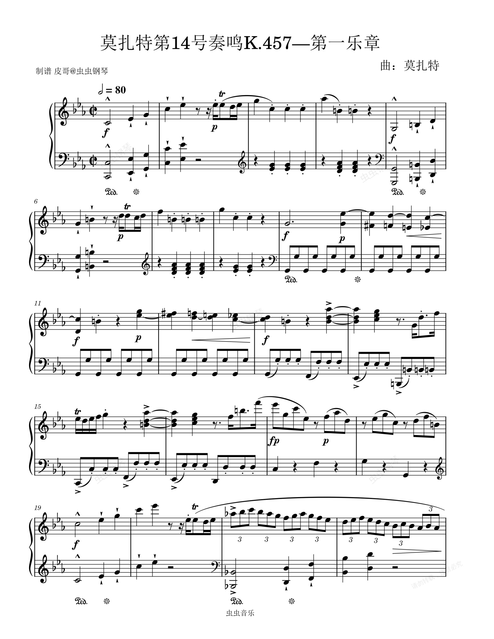 钢琴谱:莫扎特第14号奏鸣曲K.457—第一乐章  降E大调 原版钢琴谱