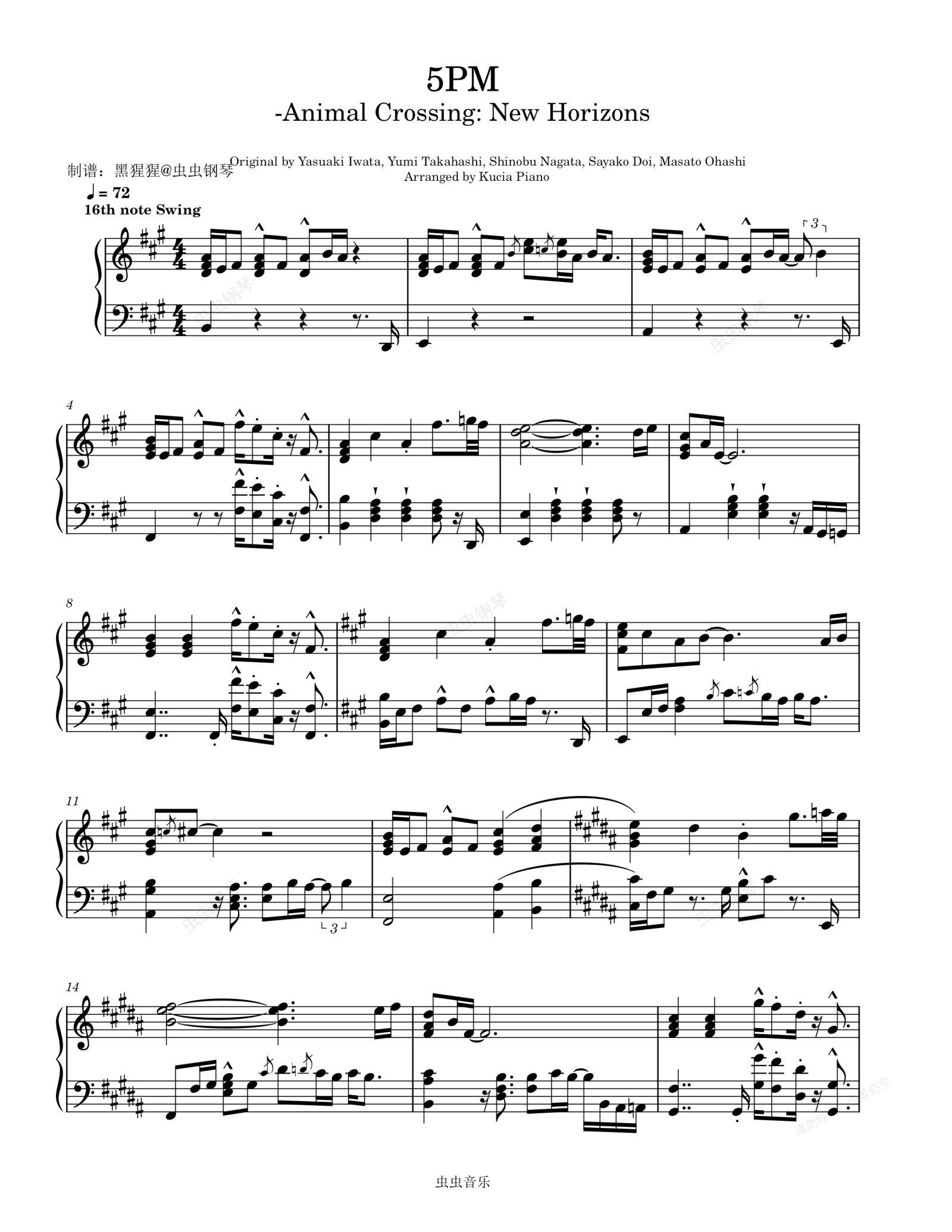 钢琴谱:岩田康明、高桥由美、永田忍、土井沙耶子、大桥正人-A调 《5PM》