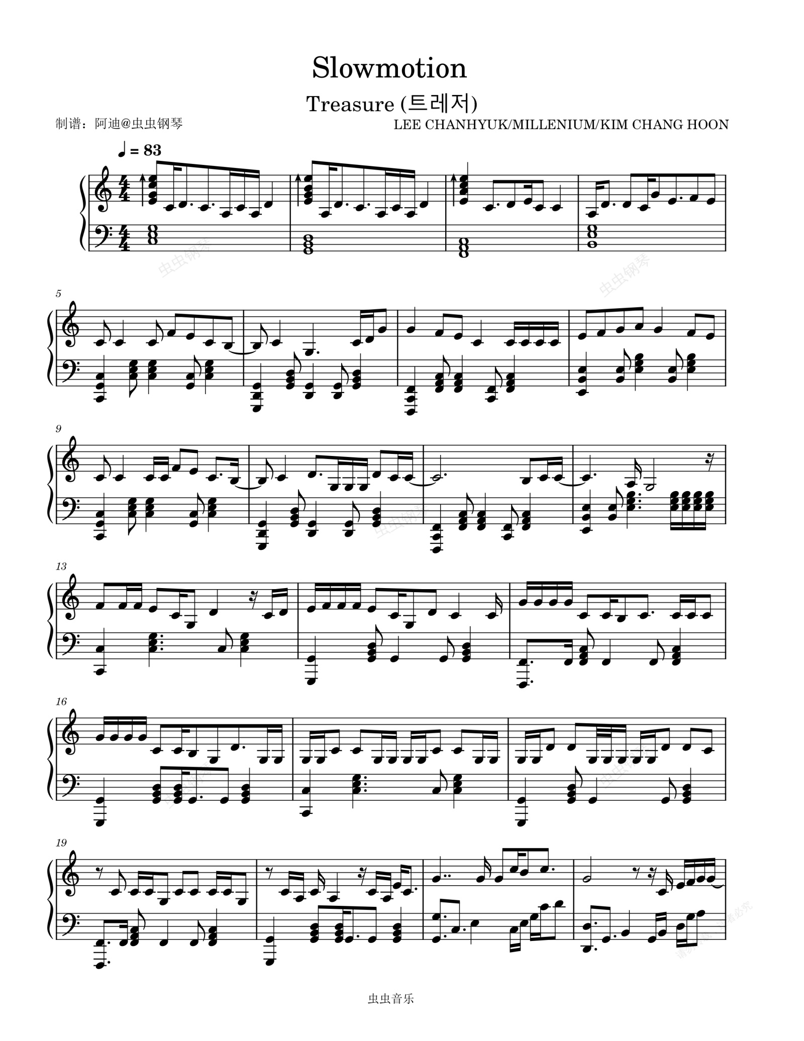 钢琴谱:SLOWMOTION - TREASURE (트레저)