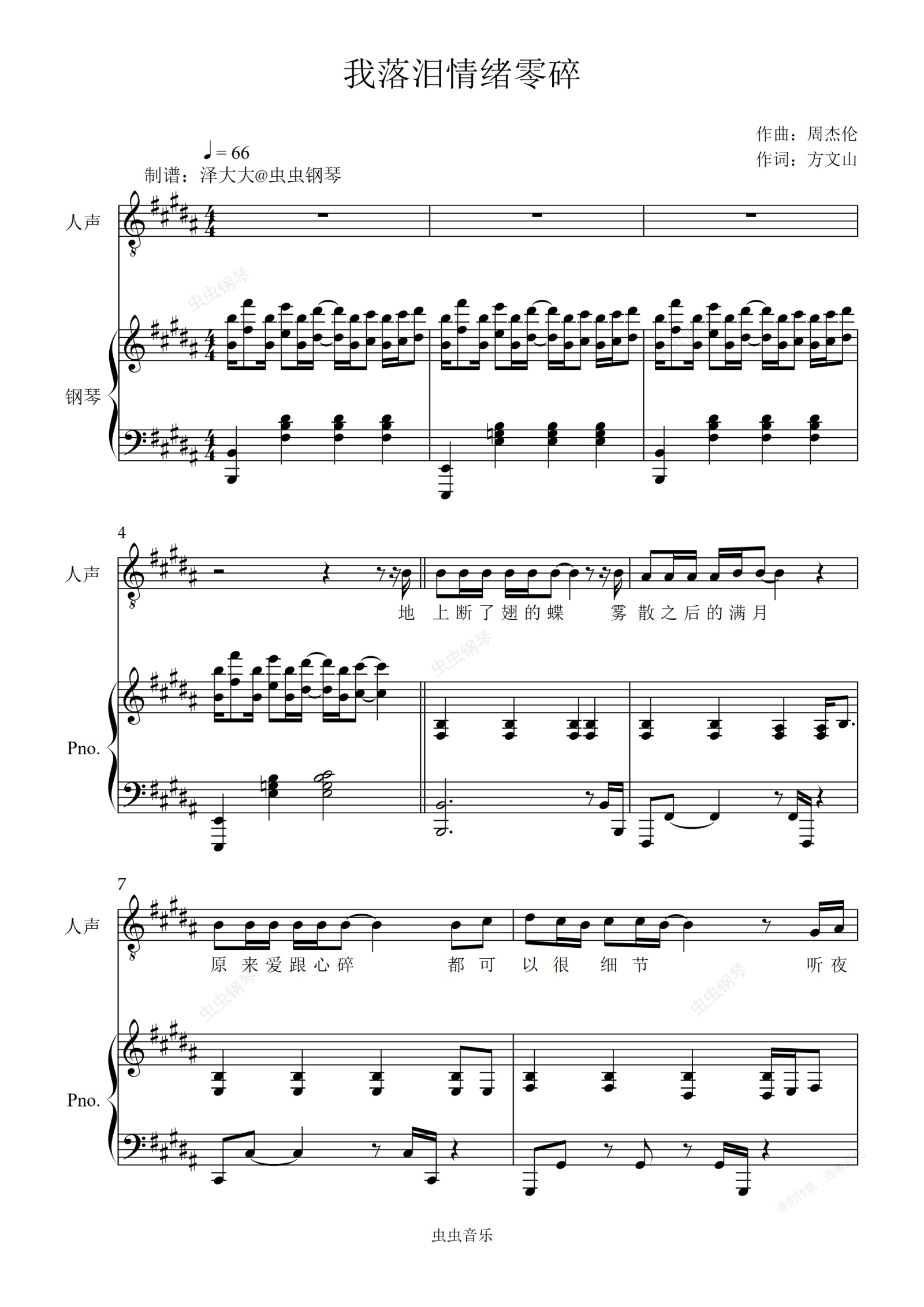 钢琴谱:我落泪情绪零碎【原版弹唱附词】泽大大 周杰伦