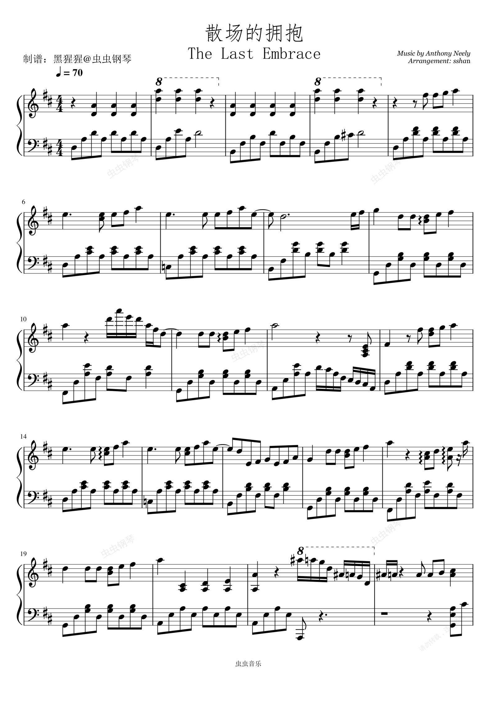 钢琴谱:倪安东-D调 《散场的拥抱》