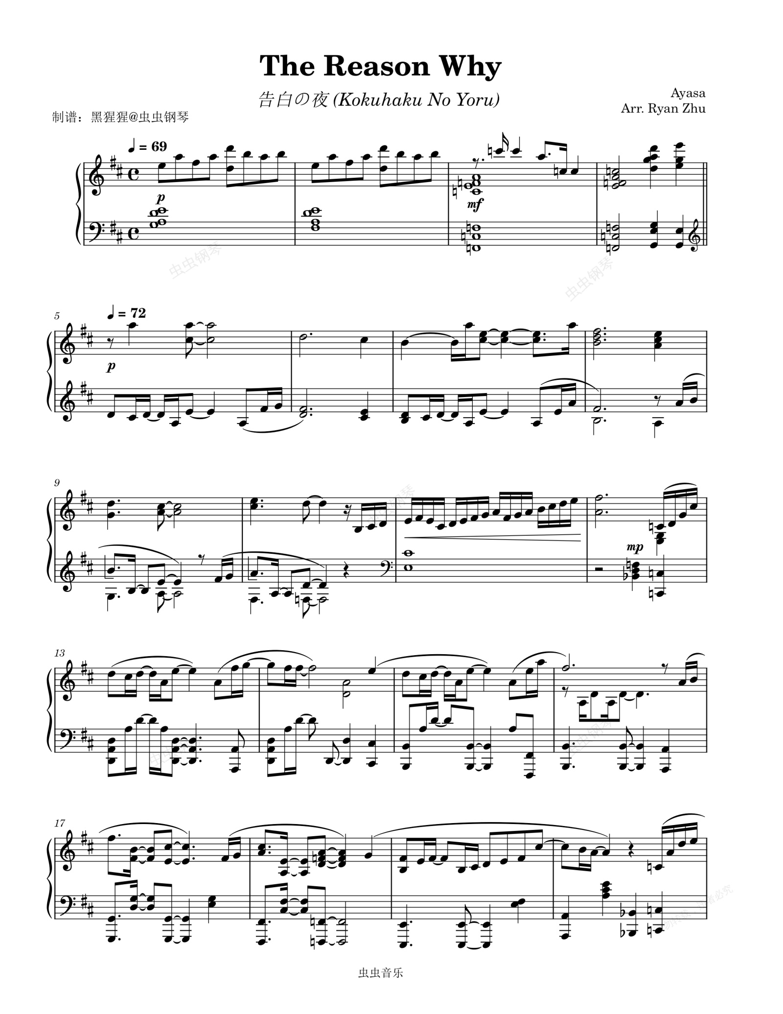 钢琴谱:岛村绚莎-D调 《告白之夜》