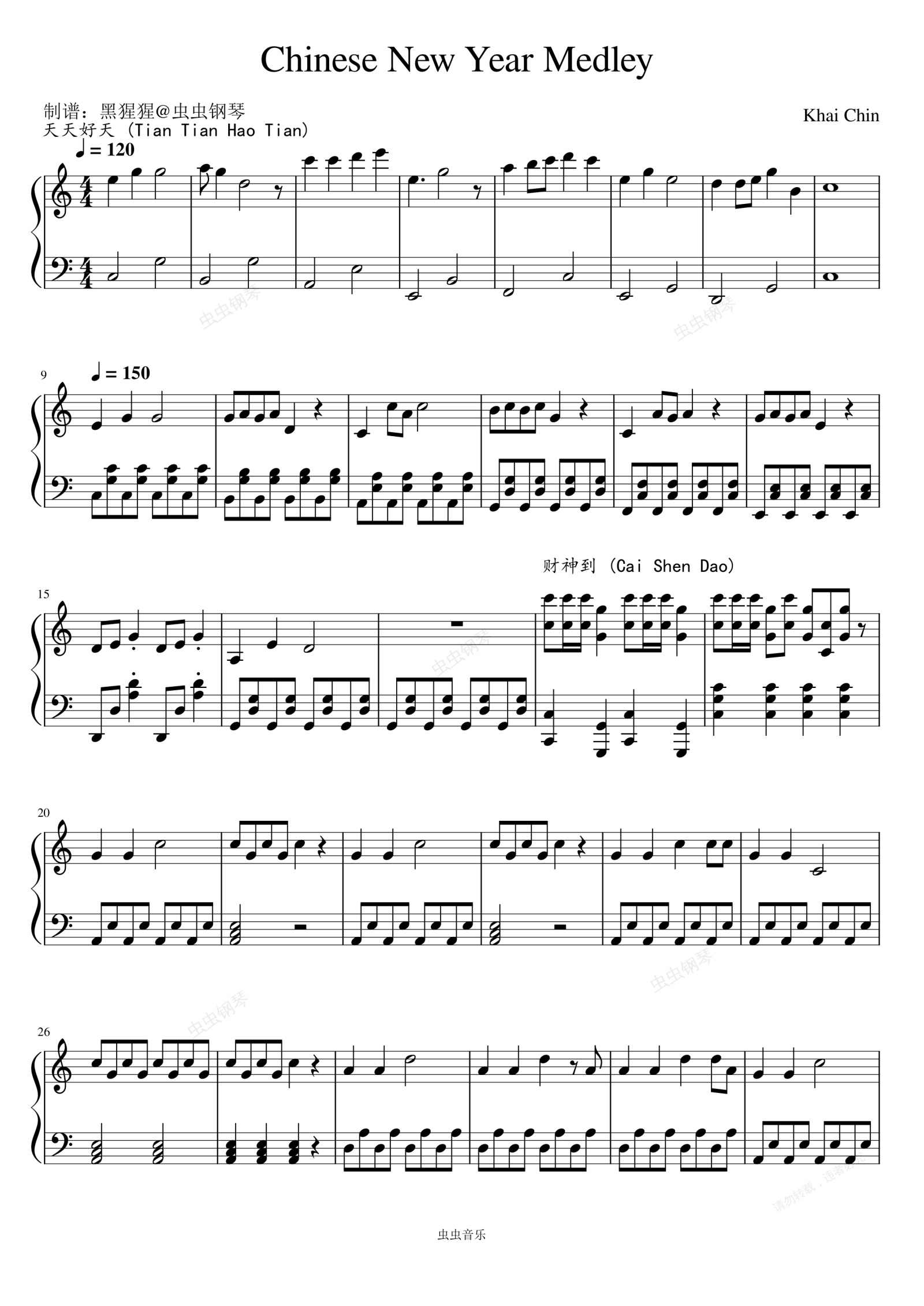 钢琴谱:新年歌曲-C调 《ChineseNewYearMedley》