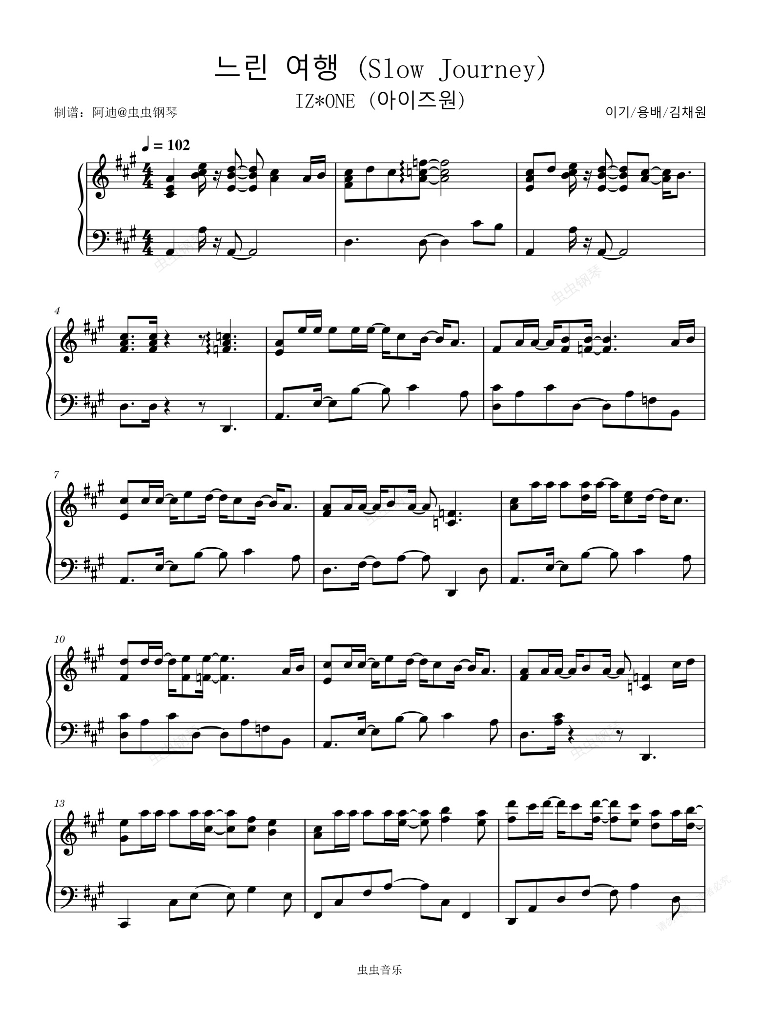 钢琴谱:느린 여행 (Slow Journey) - IZ*ONE (아이즈원)