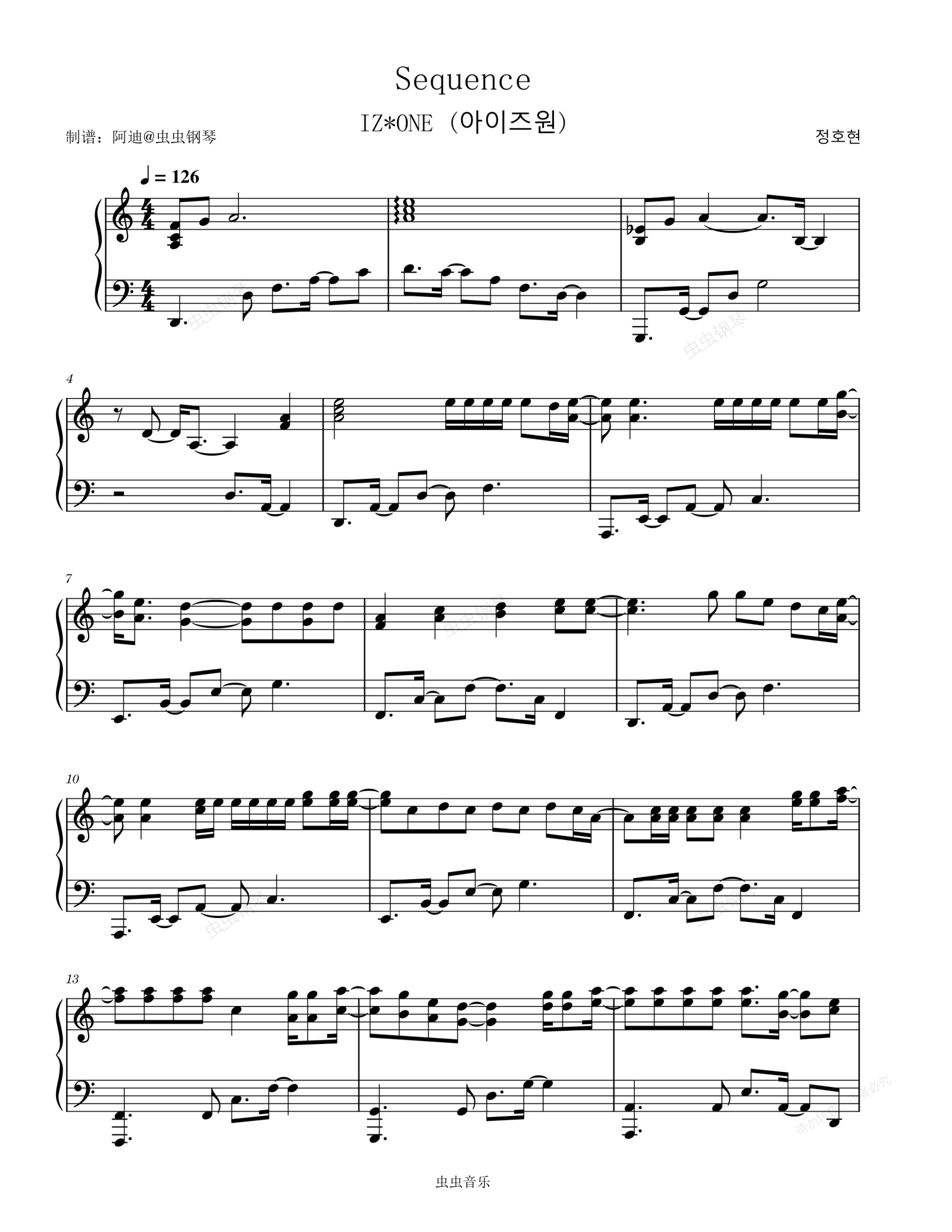 钢琴谱:Sequence - IZ*ONE (아이즈원)