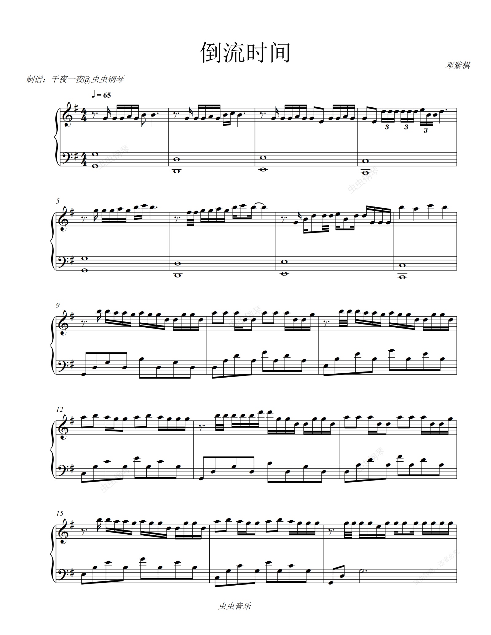 钢琴谱:G.E.M.邓紫棋《倒流时间》I'll Be Missing You