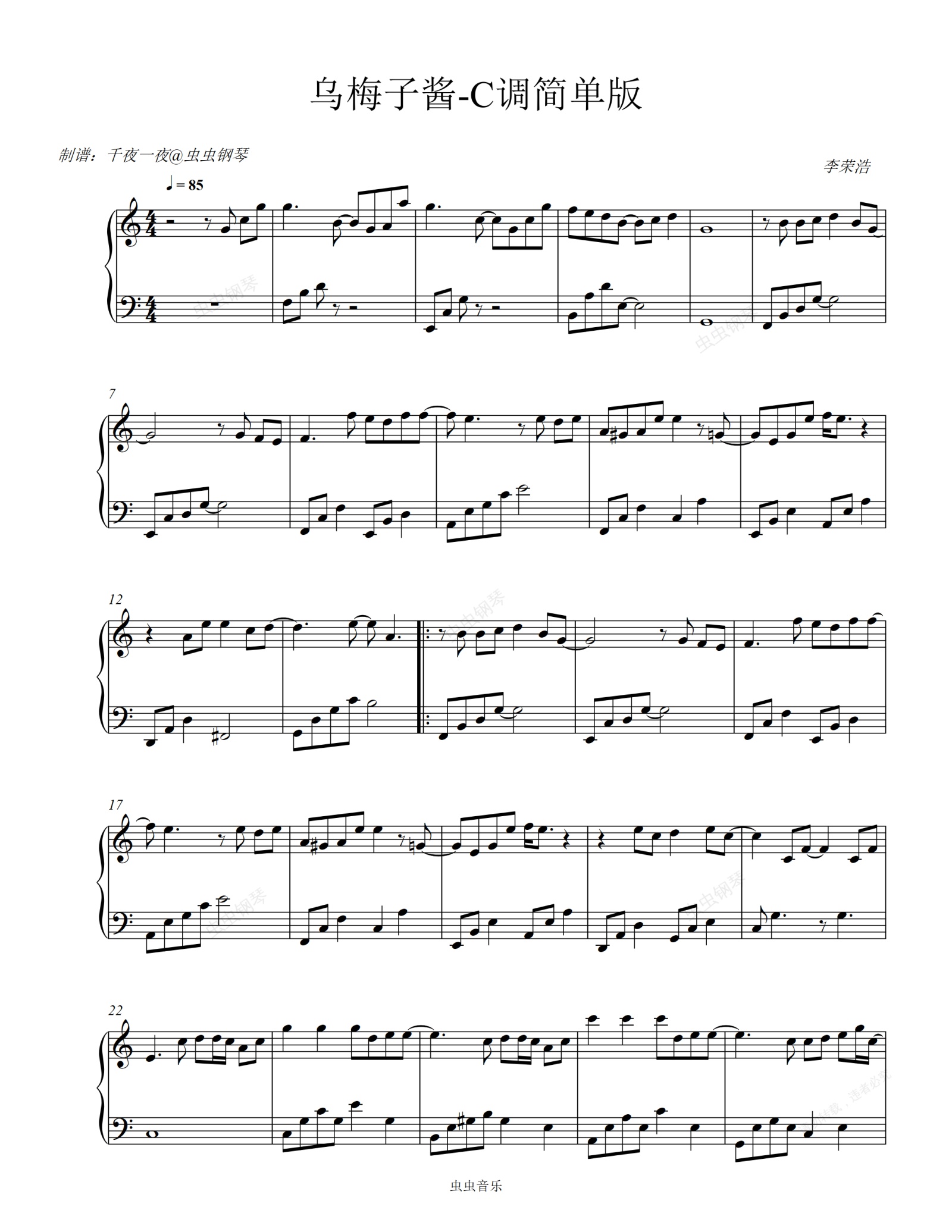 钢琴谱:【美好跨年夜】李荣浩《乌梅子酱》C调