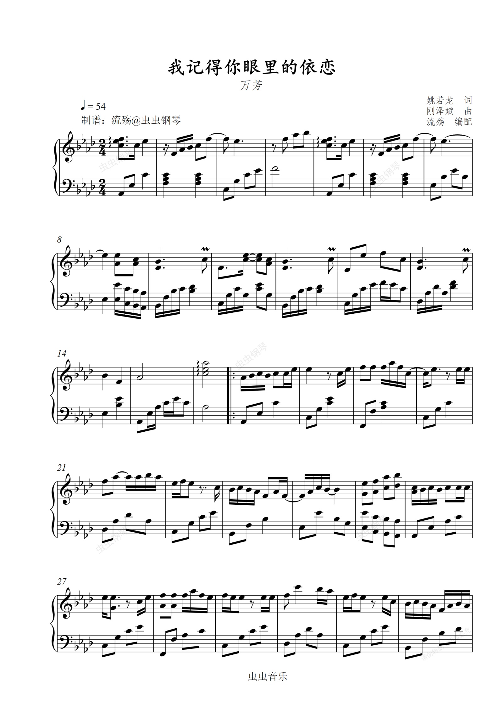 钢琴谱:我记得你眼里的依恋