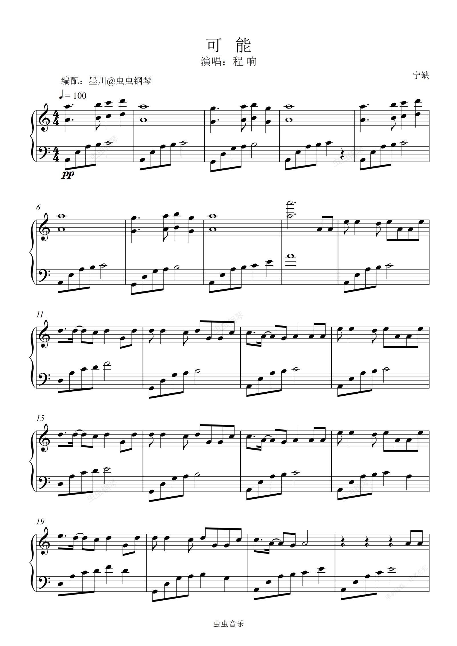 钢琴谱:可能—程响—C调编配