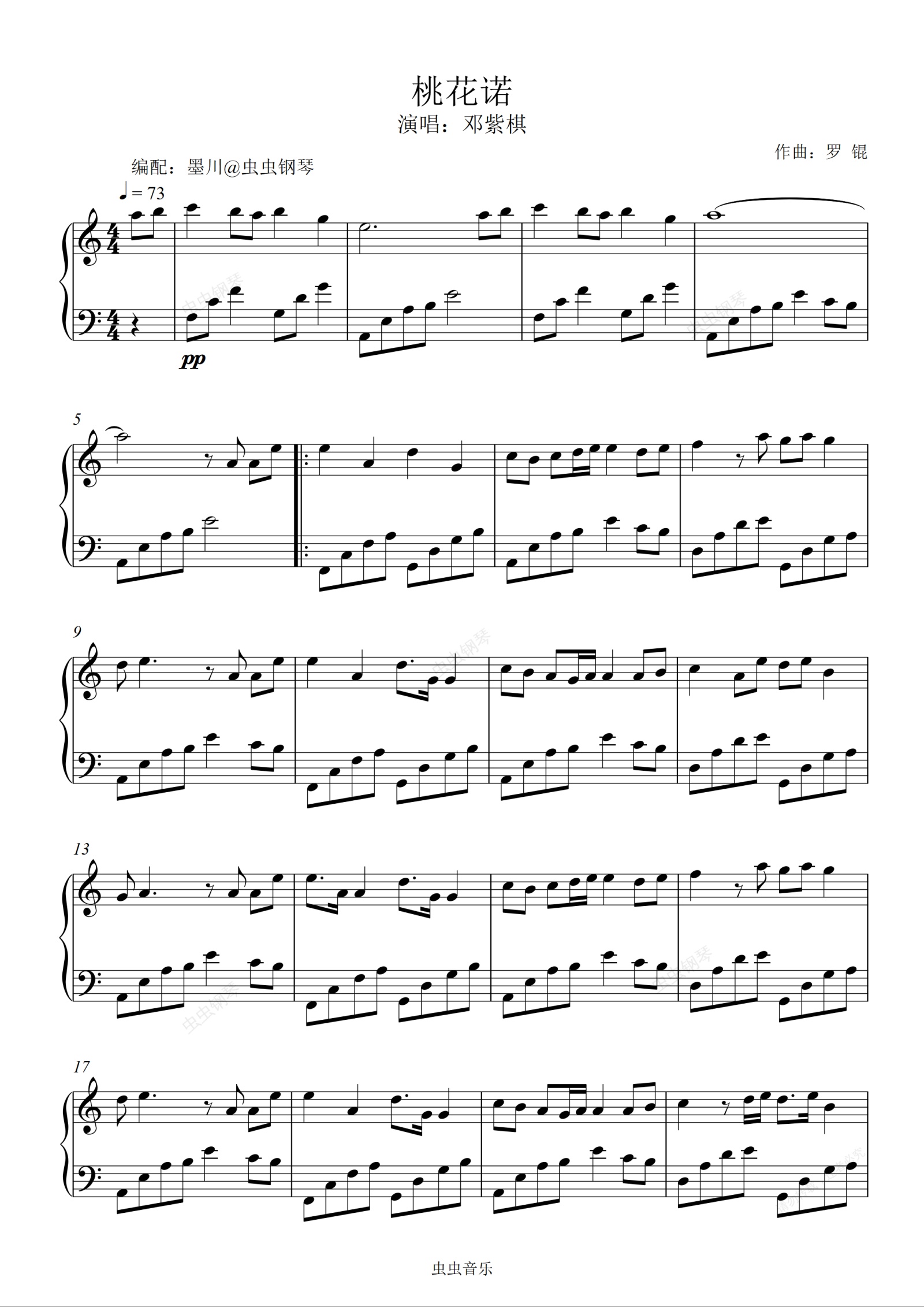 钢琴谱:桃花诺—邓紫棋—C调编配