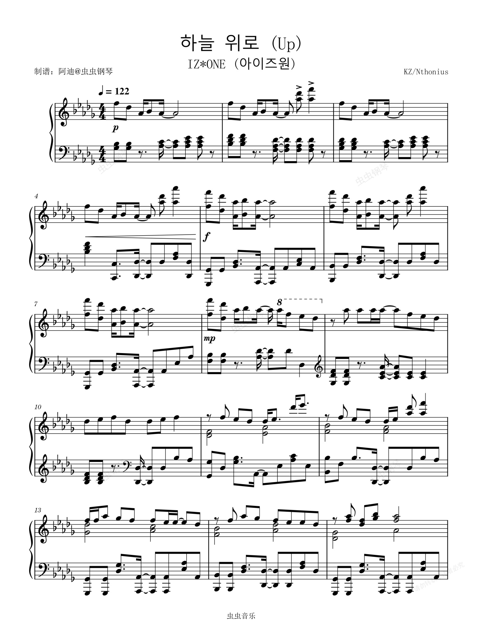 钢琴谱:하늘 위로 (天空之上) - IZ*ONE (아이즈원)