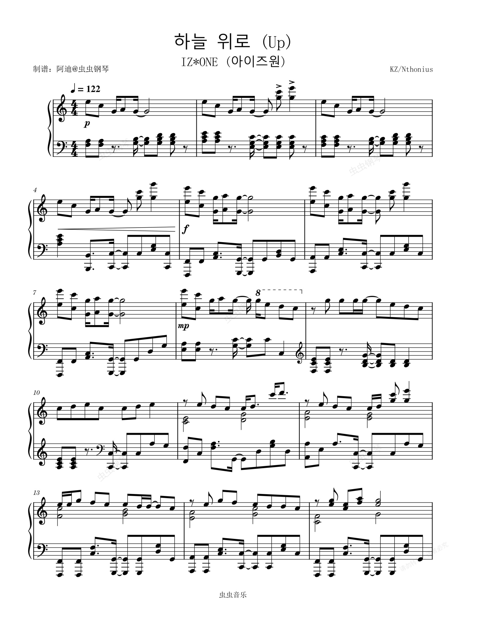 钢琴谱:하늘 위로 (天空之上) - IZ*ONE (아이즈원)