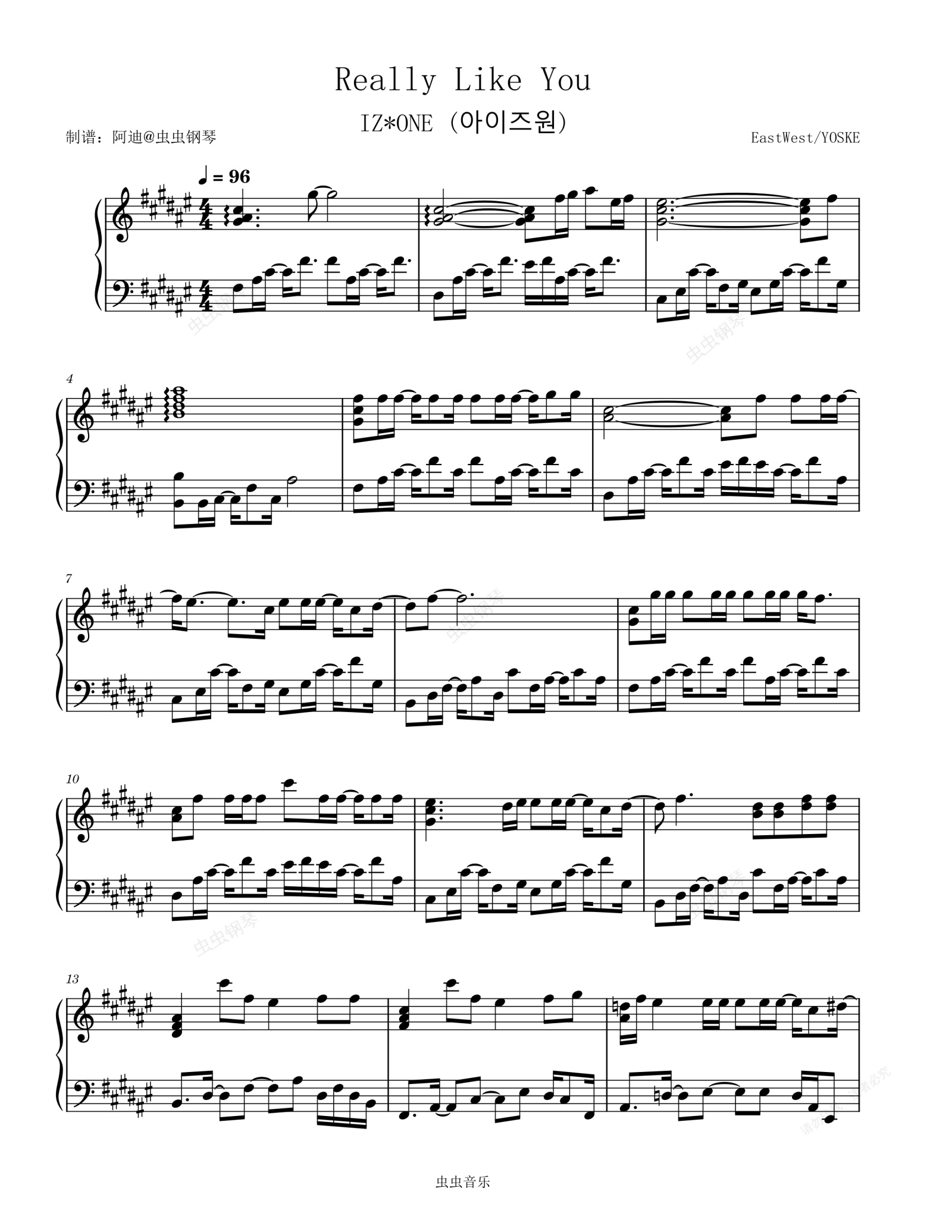钢琴谱:Really Like You - IZ*ONE (아이즈원)