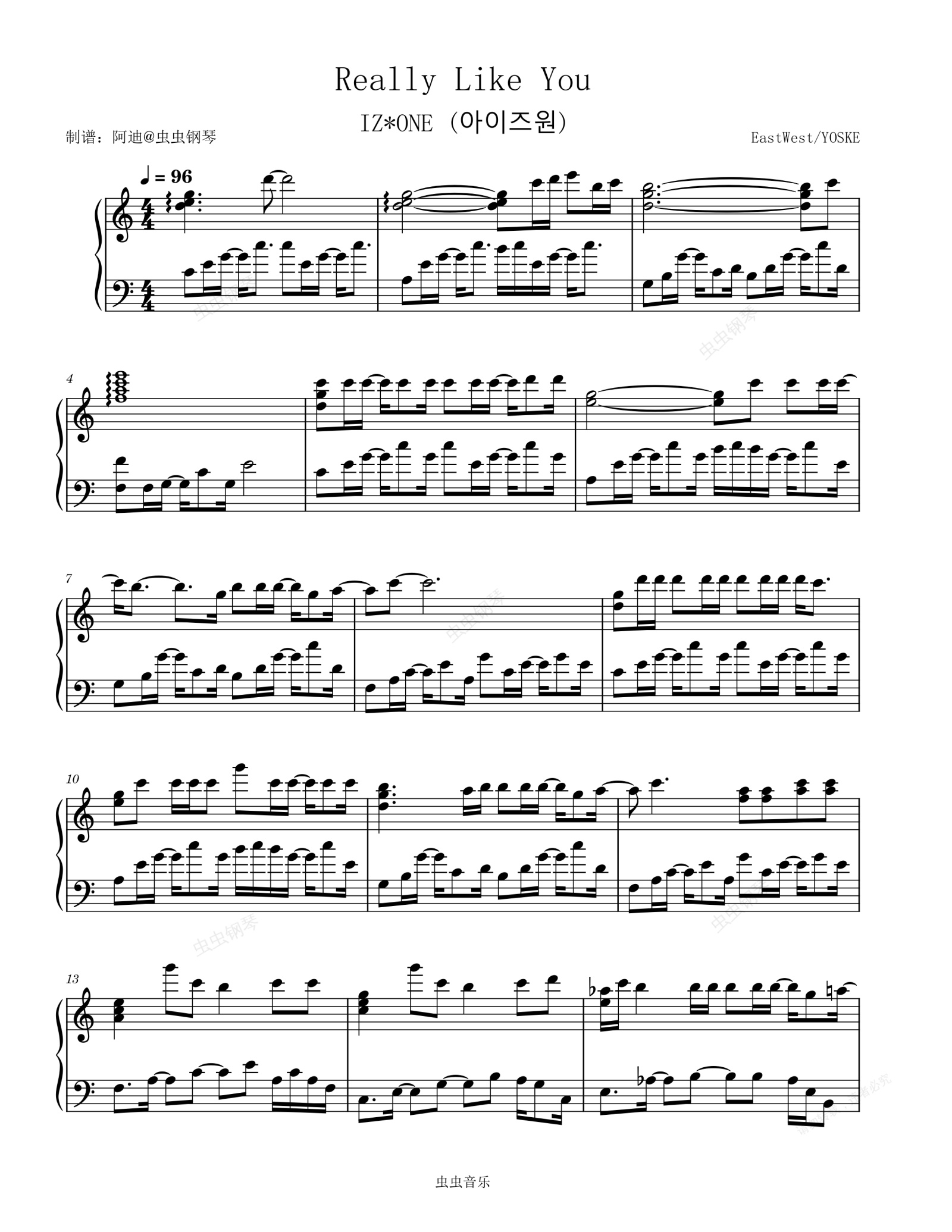 钢琴谱:Really Like You - IZ*ONE (아이즈원)
