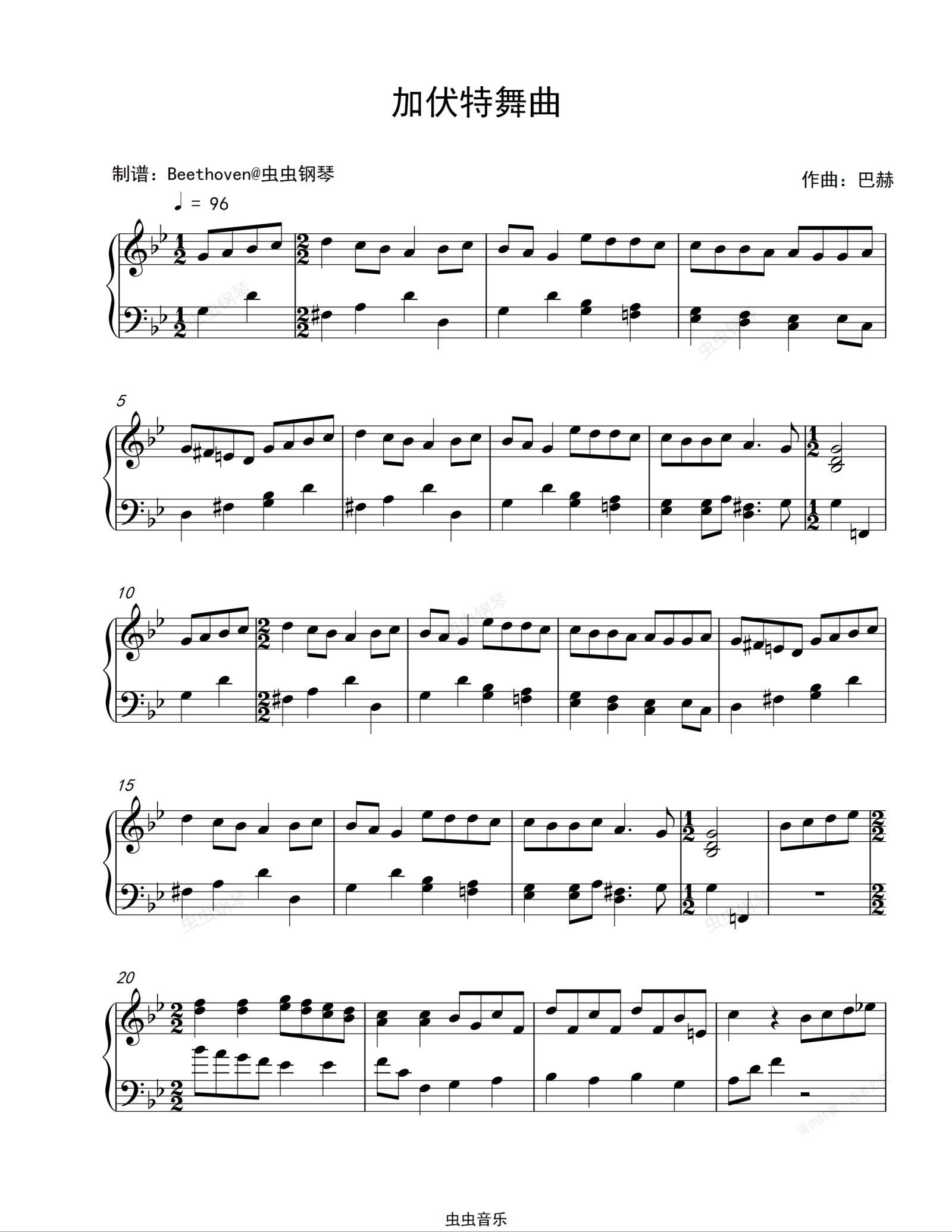 钢琴谱:加伏特舞曲 15-巴赫初级钢琴曲集