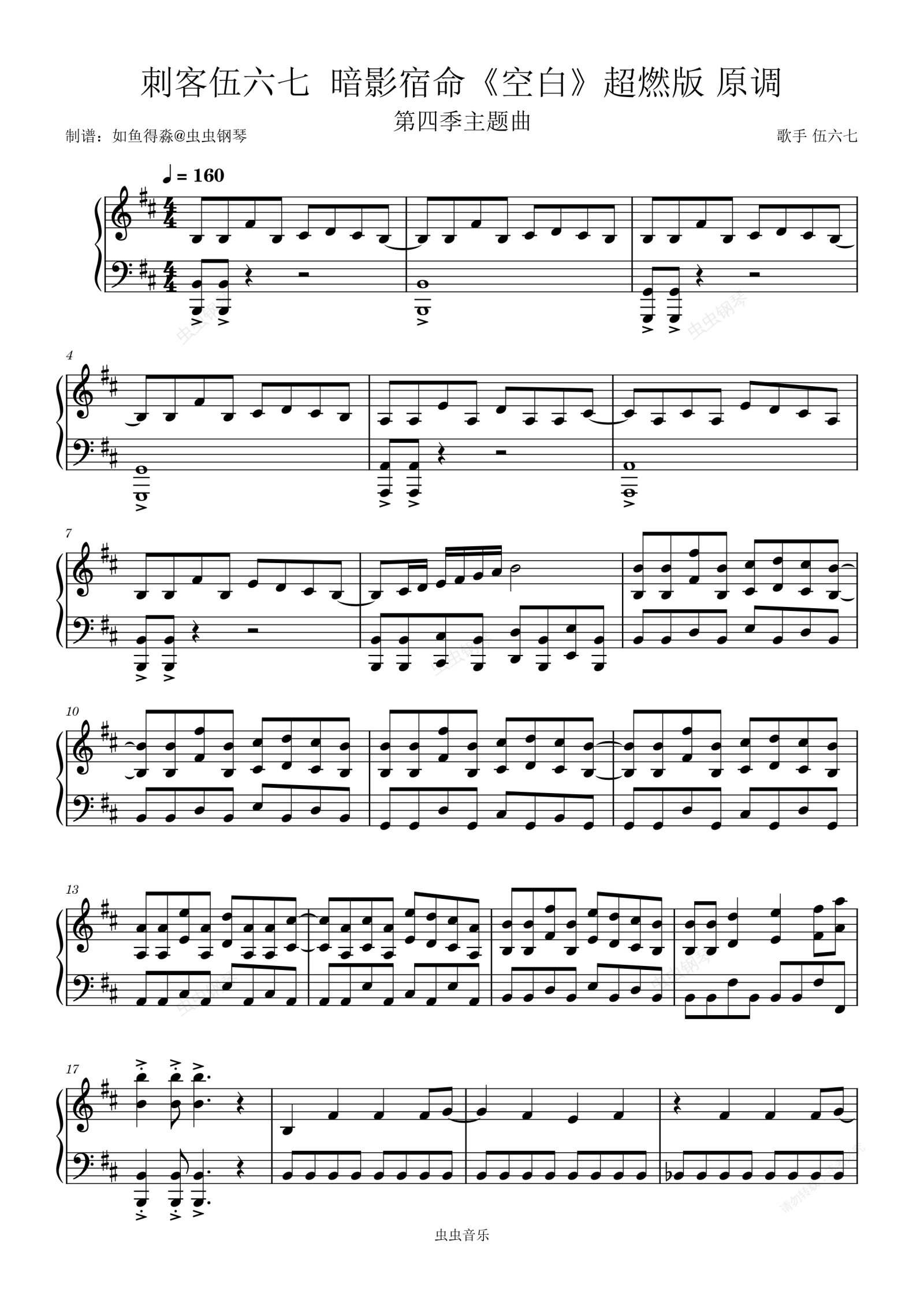 钢琴谱:刺客伍六七  暗影宿命《空白》超燃摇滚版
