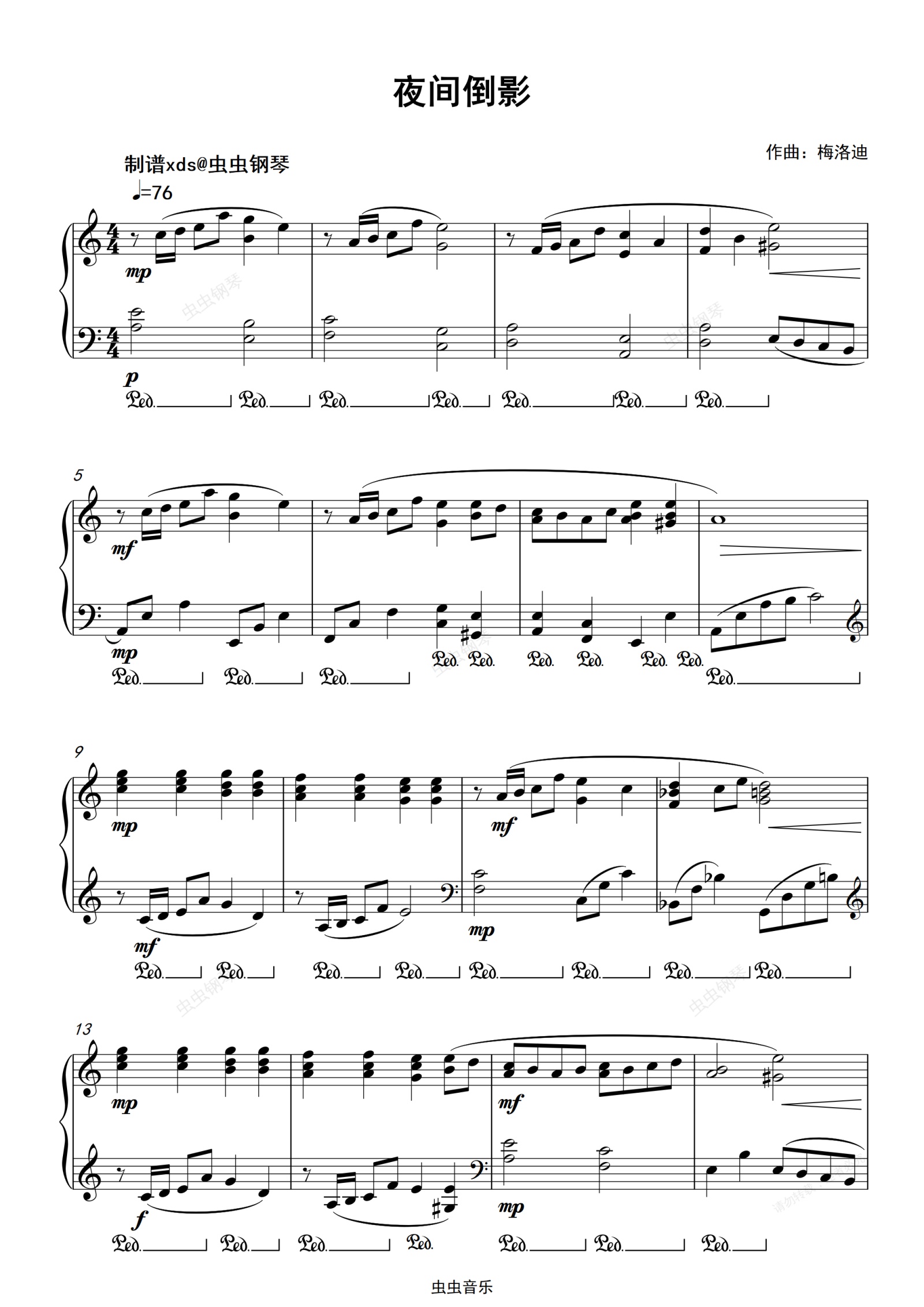 钢琴谱:夜间倒影