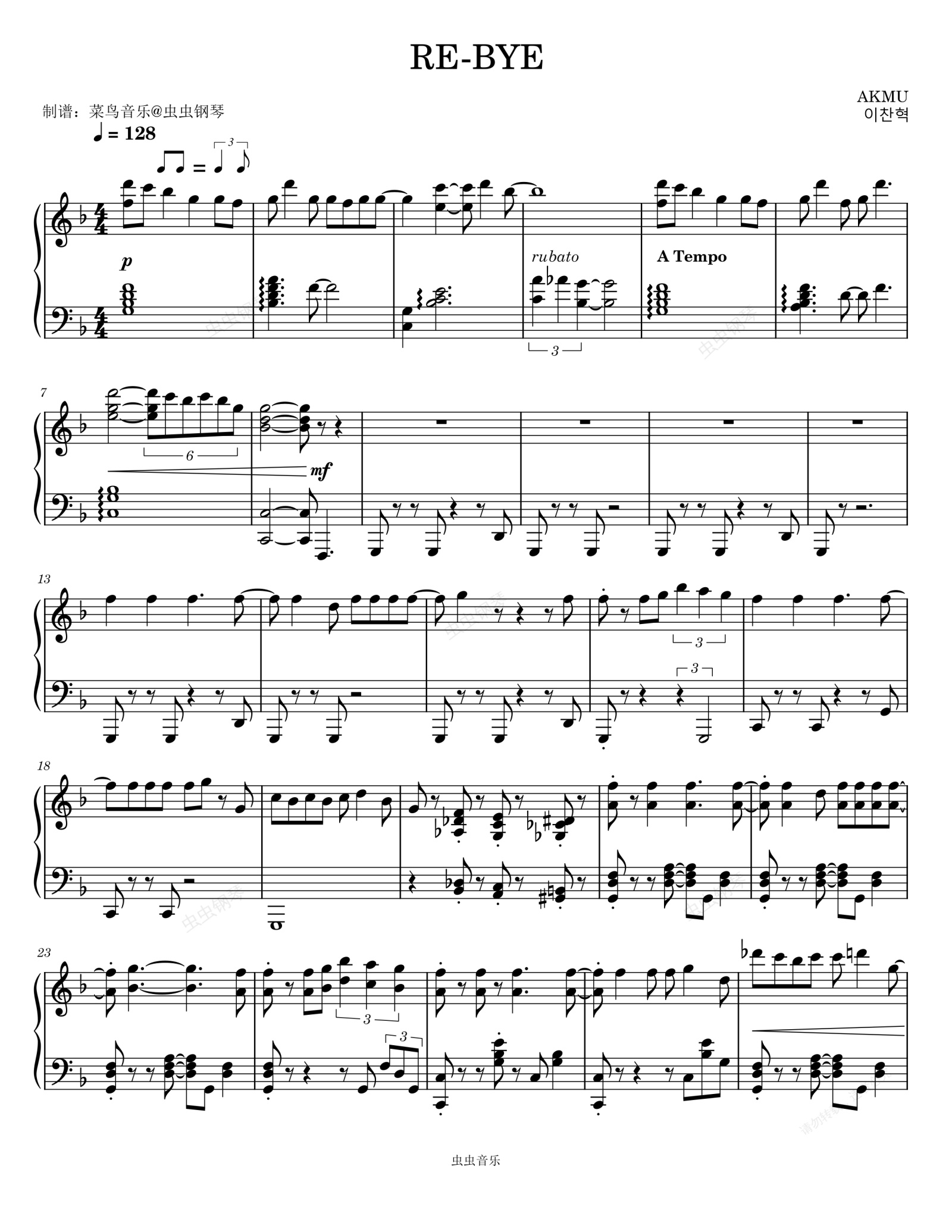 钢琴谱:RE-BYE - AKMU (악동뮤지션)