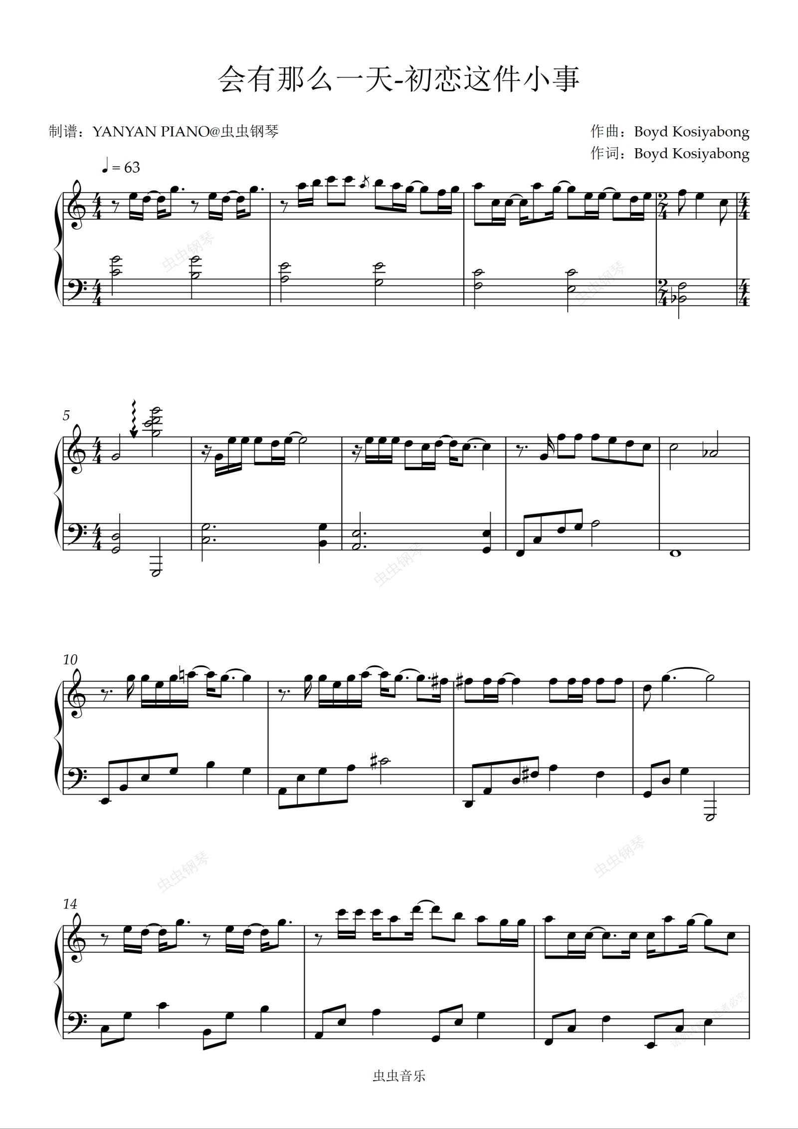 钢琴谱:好听易弹【สักวันหนึ่ง/有一天】初恋这件小事