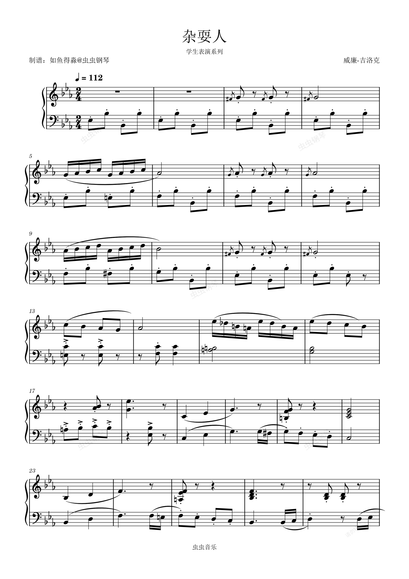 杂耍人 是威廉-吉洛克演唱的一首歌曲,威廉-吉洛克作曲,本首曲子是中等难度的Eb调钢琴歌谱,适合有一定基础的同学学习 非常适合小朋友教学表演比赛的曲子!