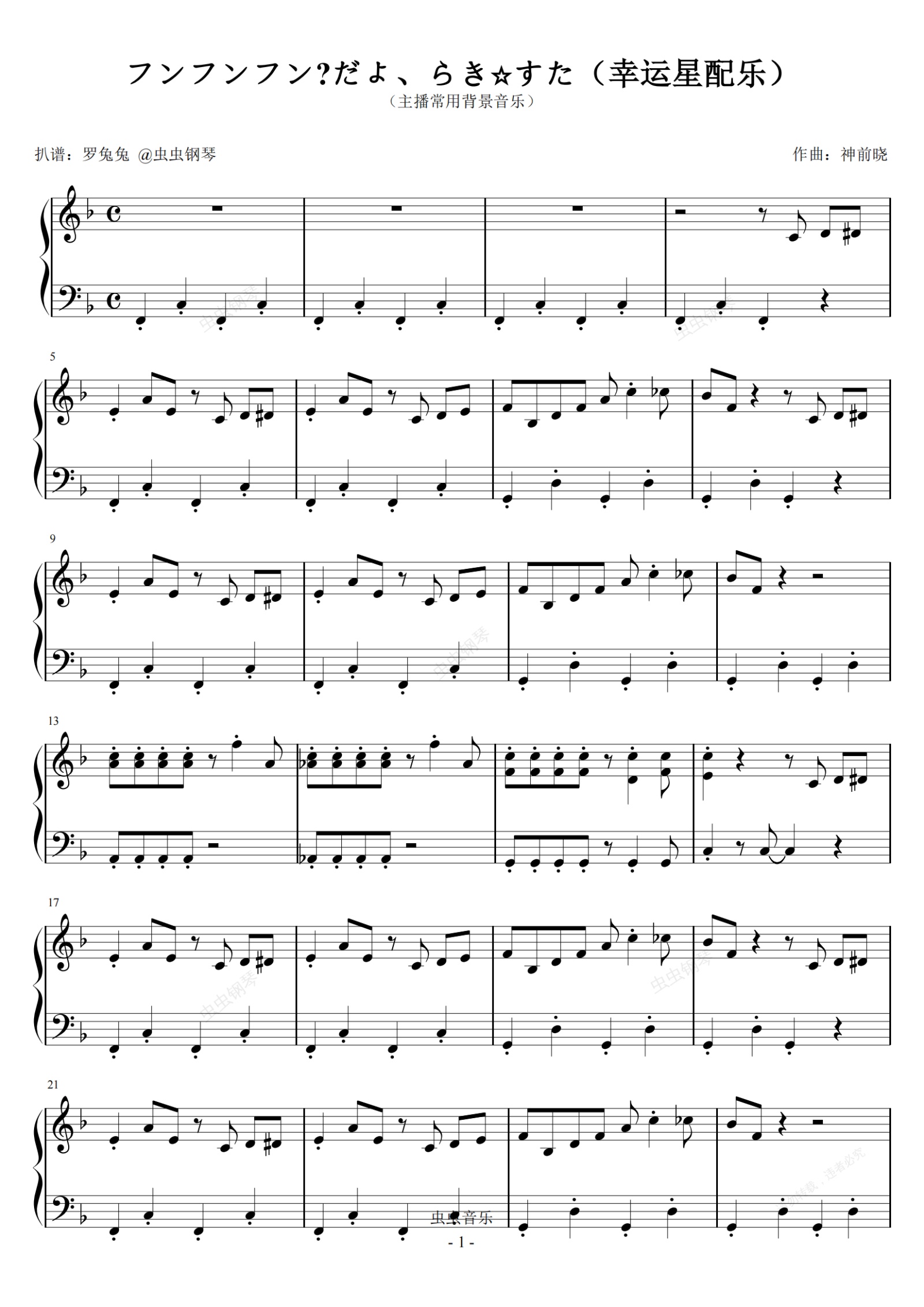 钢琴谱:フンフンフン?だよ、らき☆すた(幸运星配乐)(主播常用背景音乐)